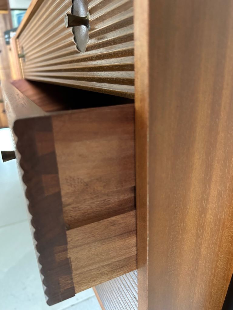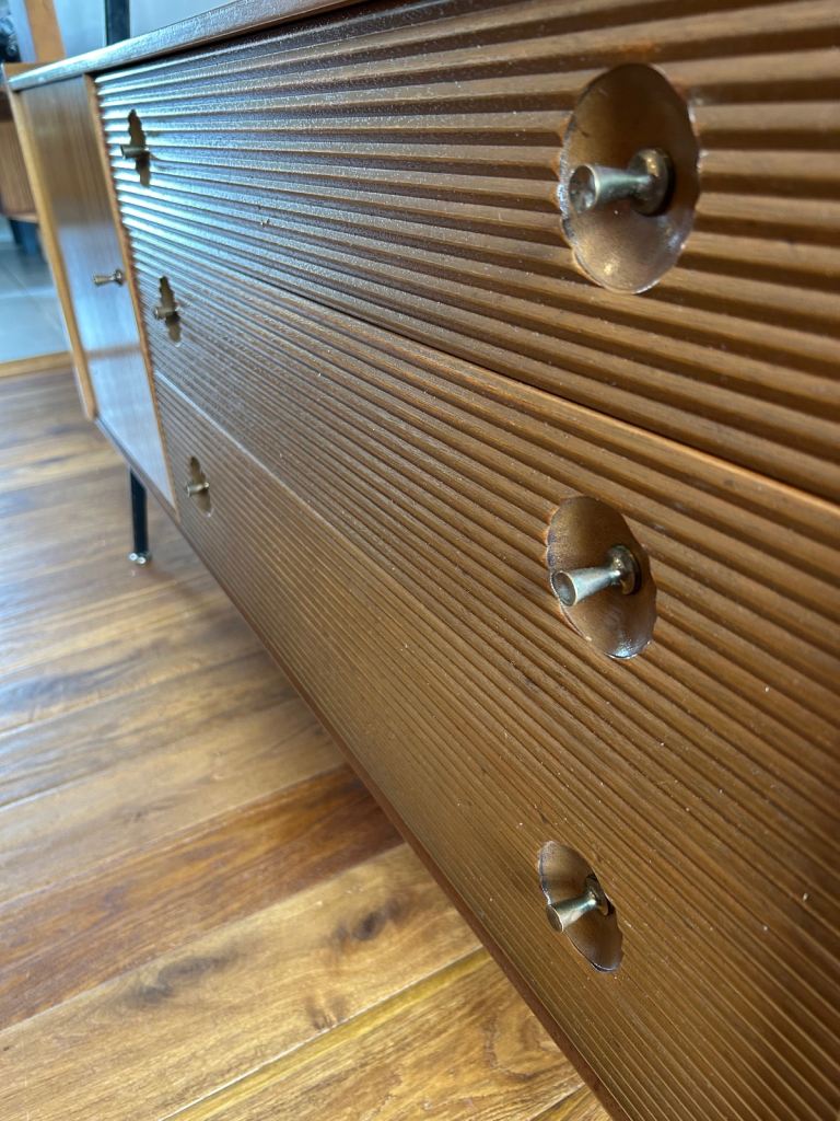 A timeless piece that showcases classic mid-century design, this sideboard makes an ideal addition to any stylish interior, combining elegant aesthetics with practical storage and entertaining features.