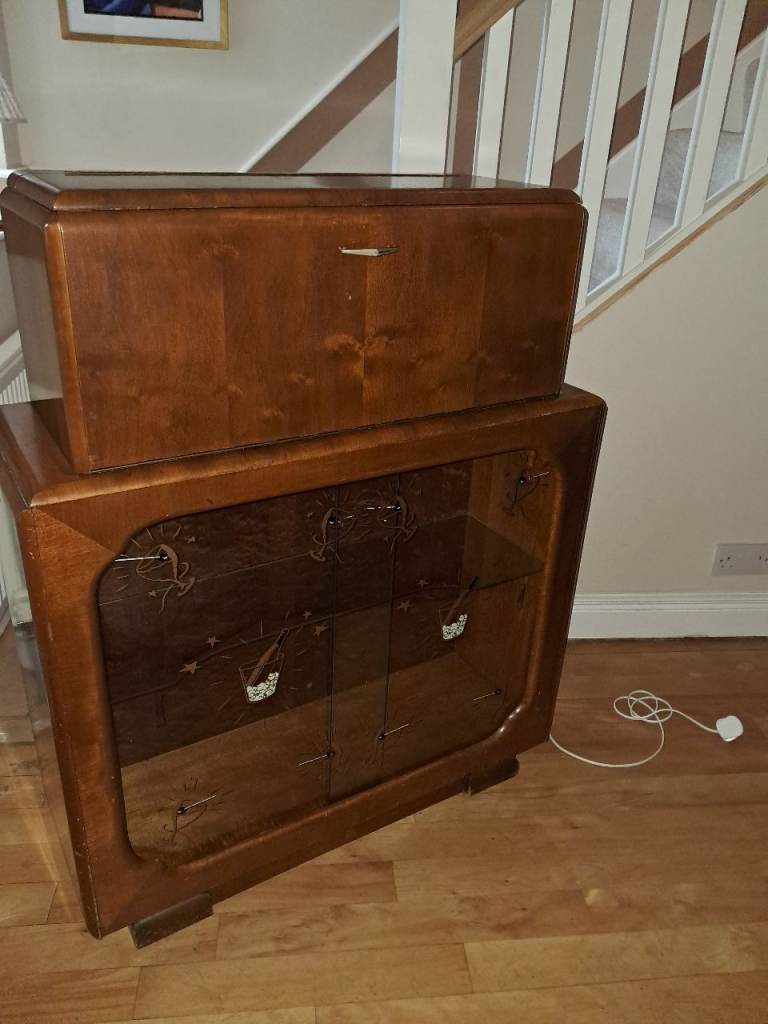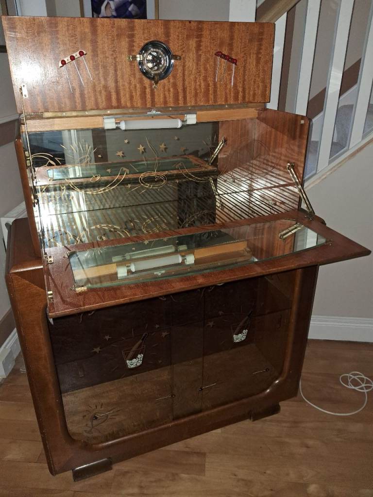Title: Vintage Mid-Century Sureline Cocktail / Drinks Cabinet – Lighted – Original Accessories