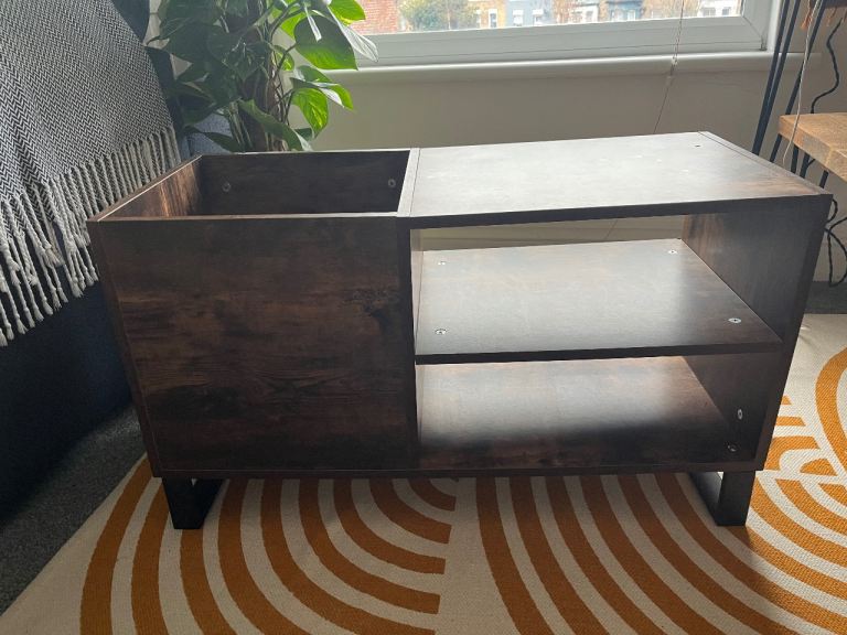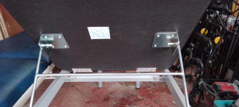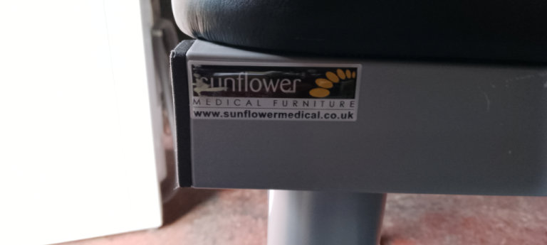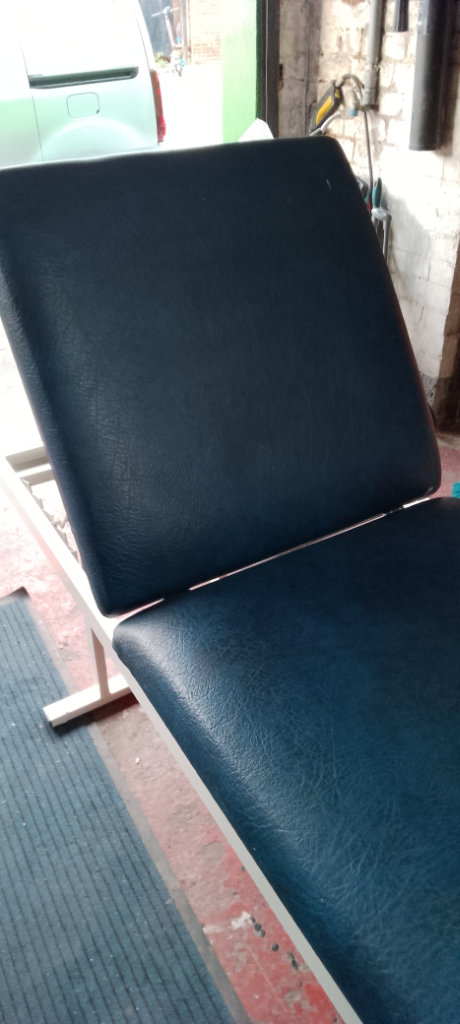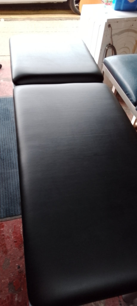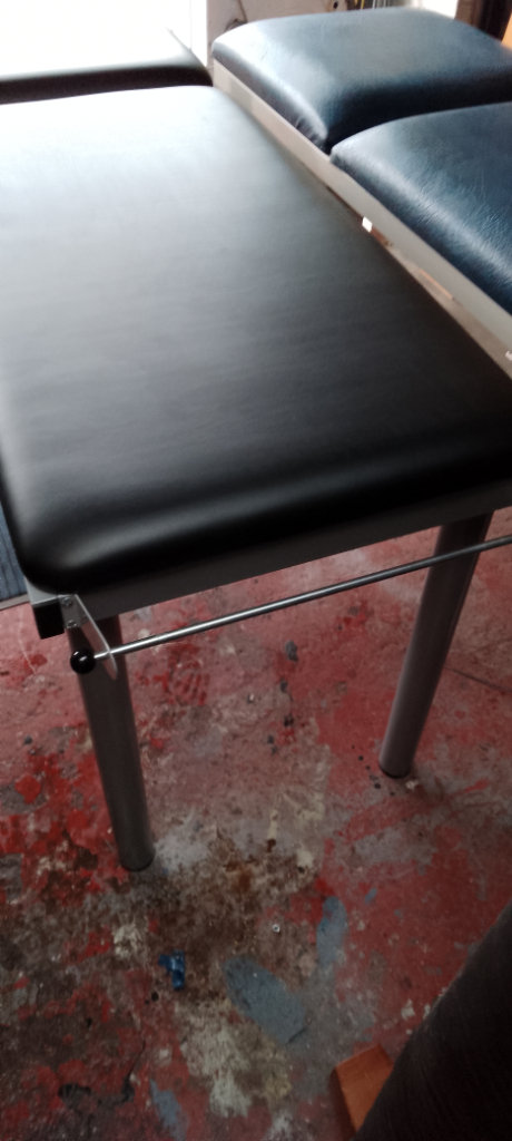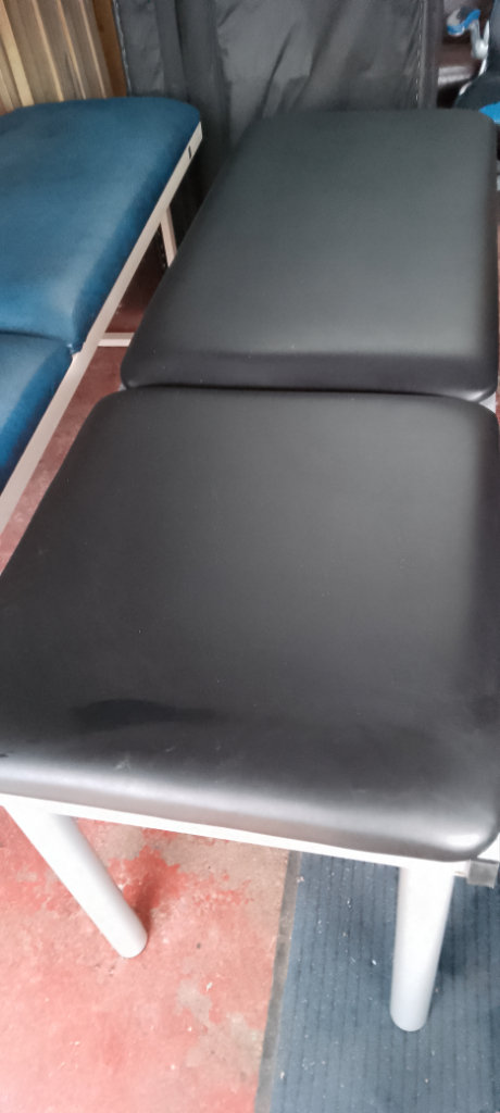 black unmarked leather portable massage table. Only 4 months old with metal removable screwed legs.