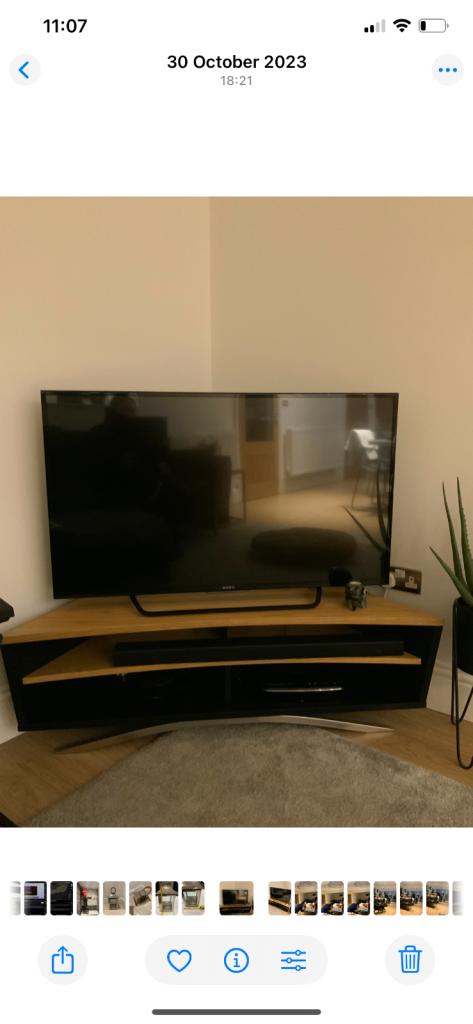 Solid tv cabinet to fit up to 65 inch tv in oak and black. Bought fully assembled from curry’s £399. Excellent condition