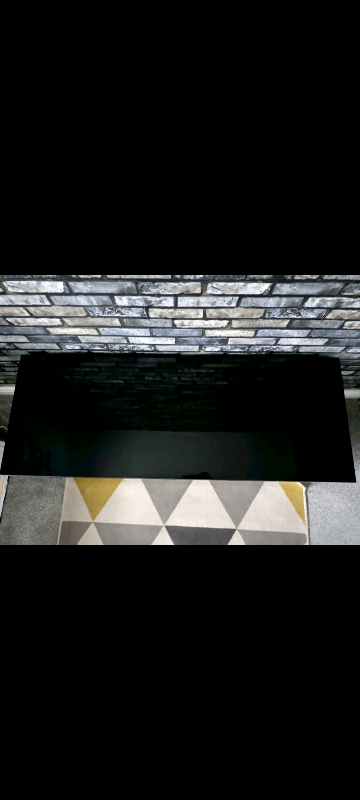 Very solid heavy duty black TV unit, opening doors with selves for storage, hole at the back for cables to thread through, width 120cm x height 50cm x 45cm width, ready to collect for £60