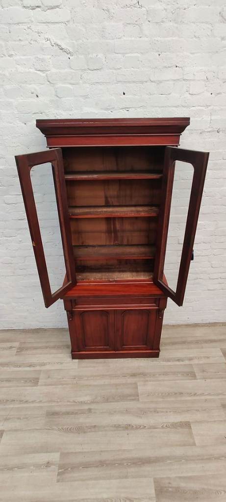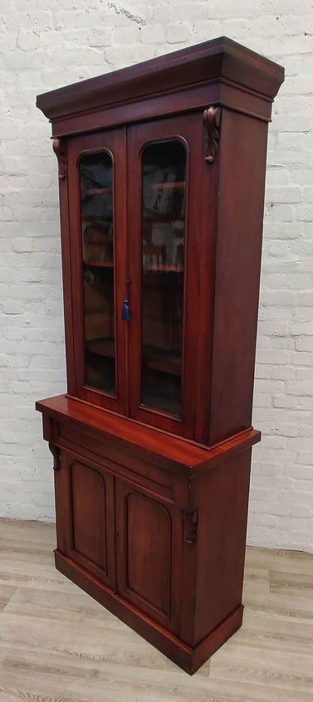 Victorian mahogany glazed bookcase over side unit (DELIVERY AVAILABLE)