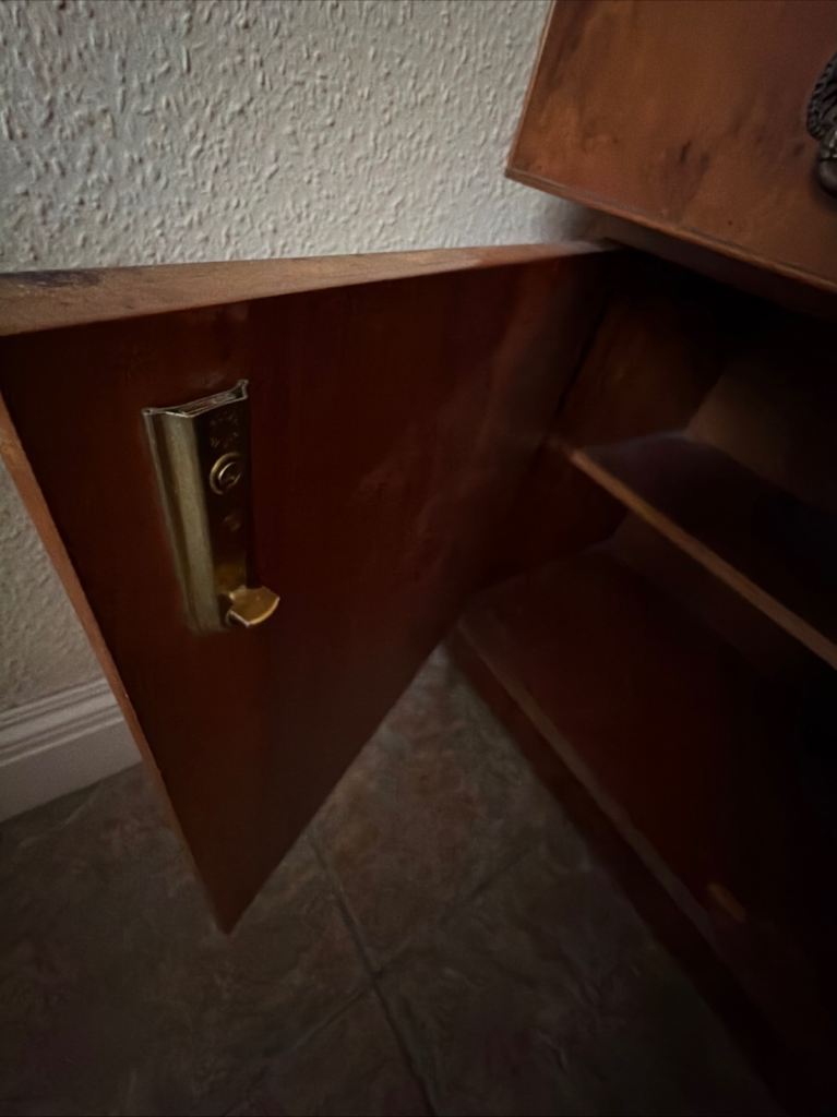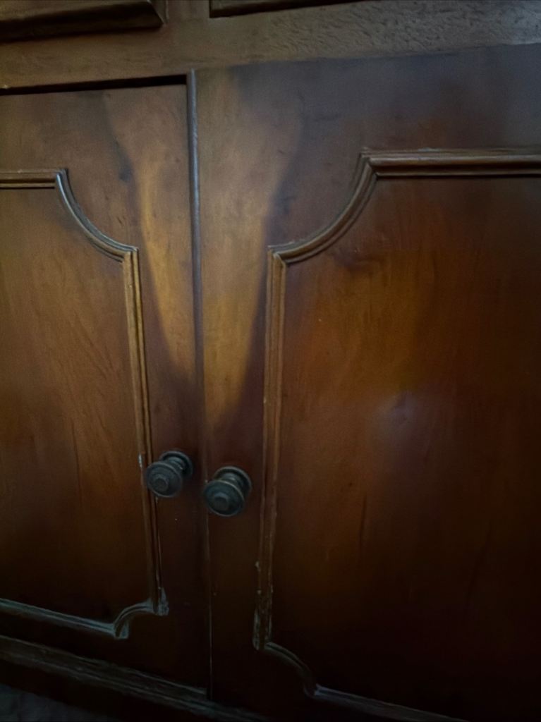 Could be a refurbish project. Needs some touch ups and some mending but still looks good. Two cabinets available.