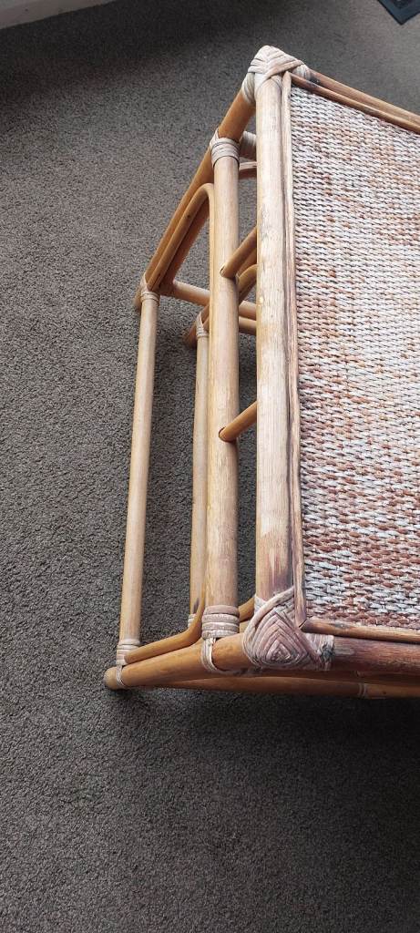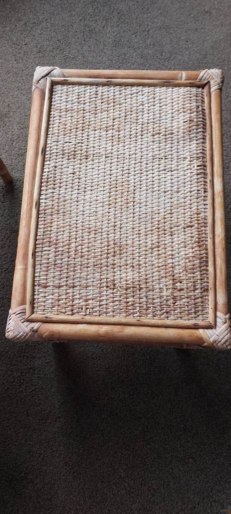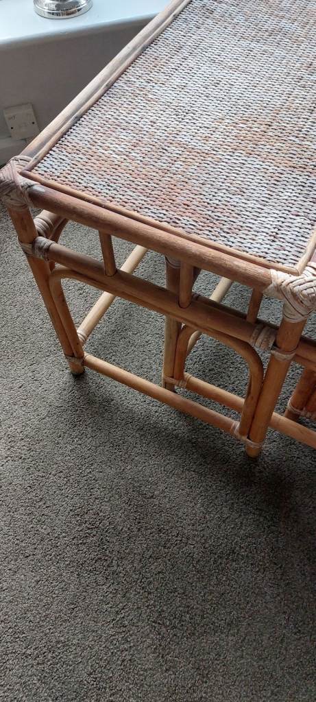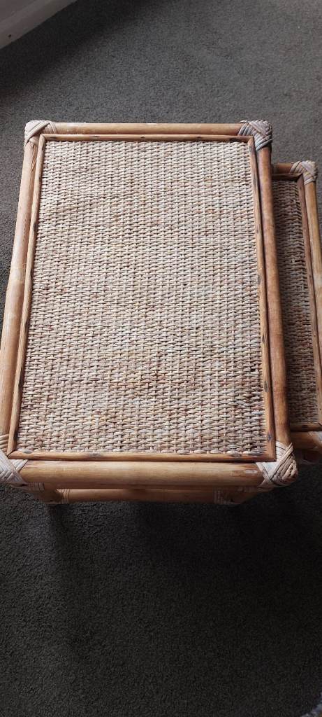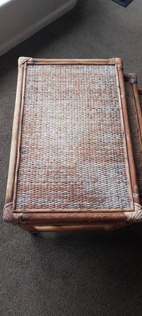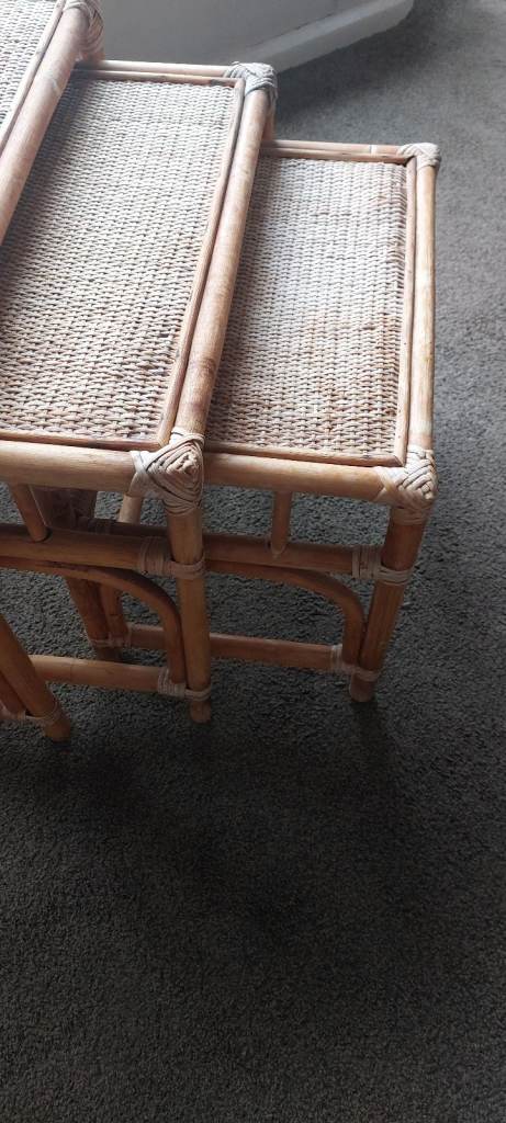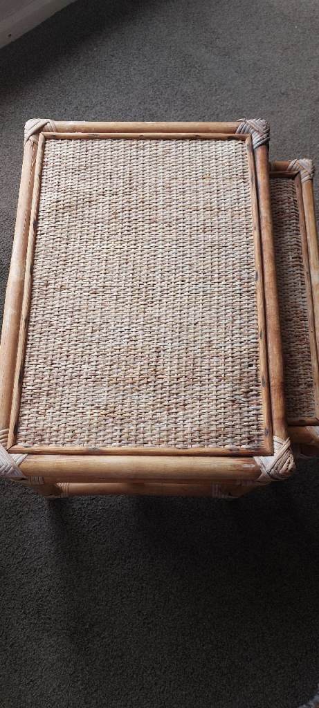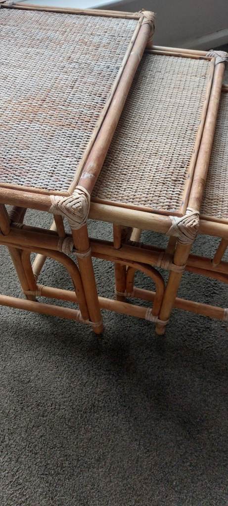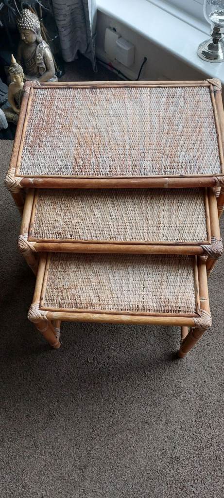Vintage Bamboo & Rattan Nest of Tables – Boho Mid Century Cane Side Tables