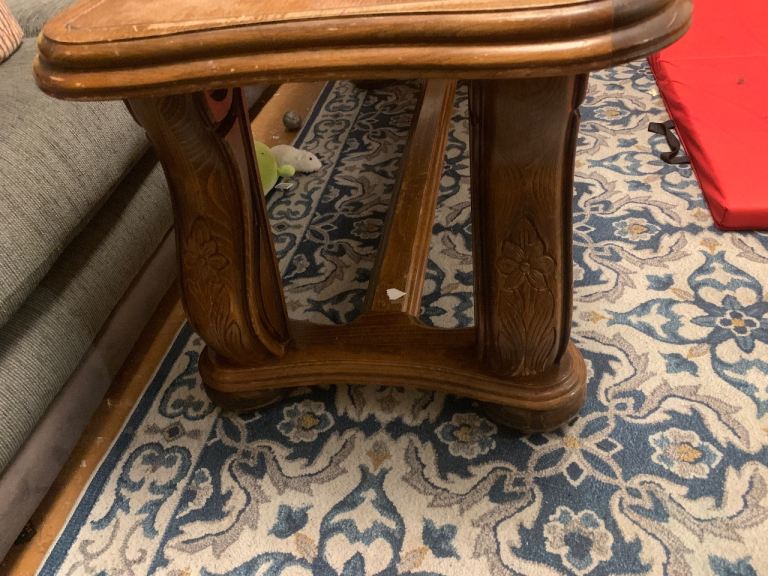 There is a shelf missing from the cupboard, however it does not detract from the overall use and could easily be replaced.