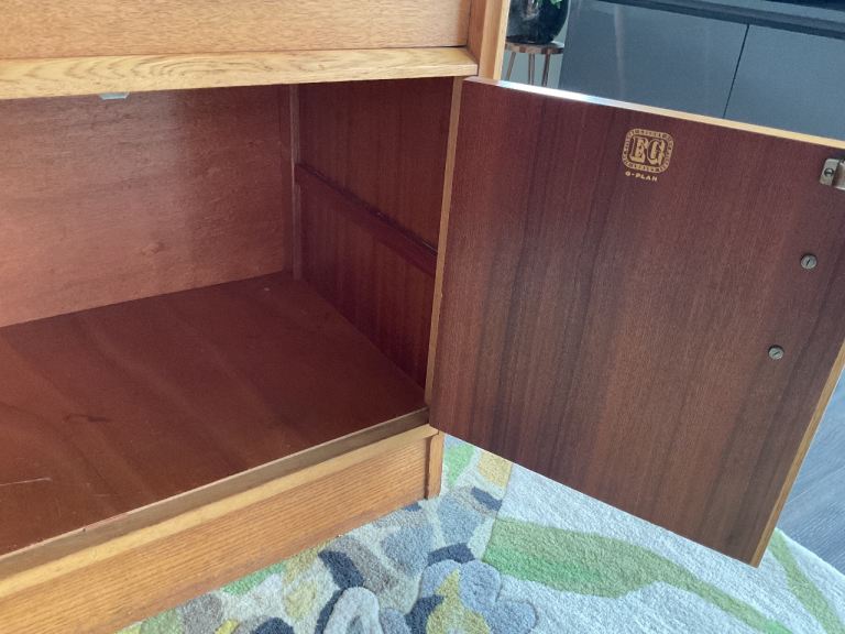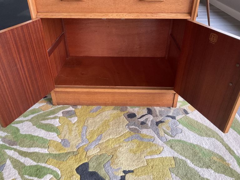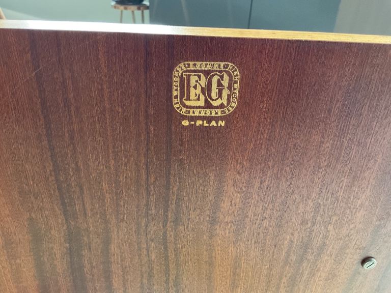 The GPlan E Gomme gold stamp is inside the door.
