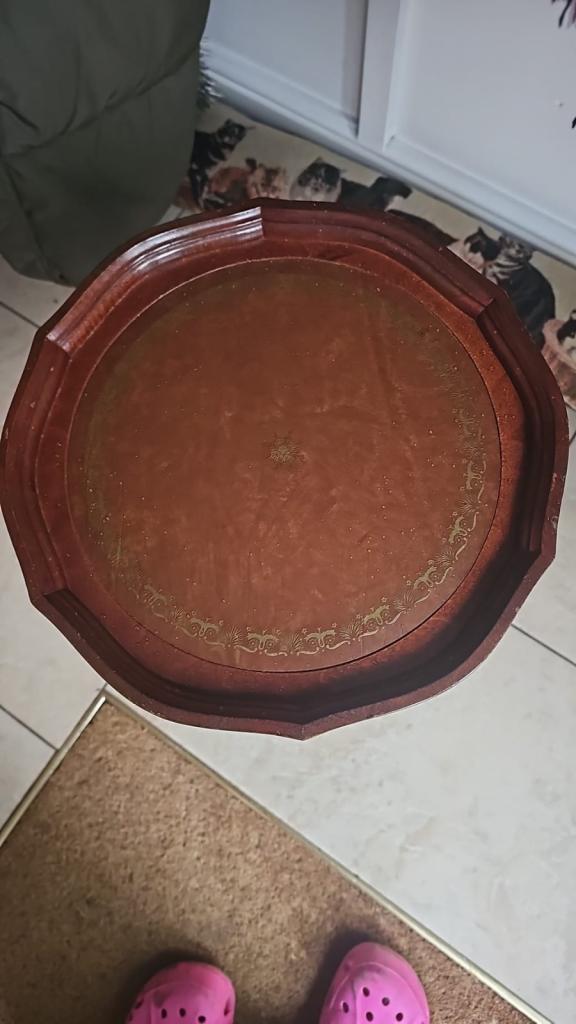 Vintage mahogany and leather-topped tripod side table it’s in good sturdy condition some age related wear. Collection is from Malpas Newport Np20