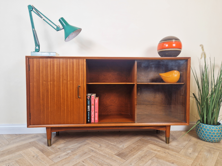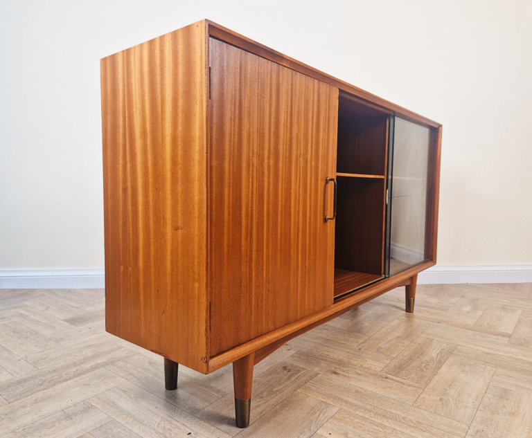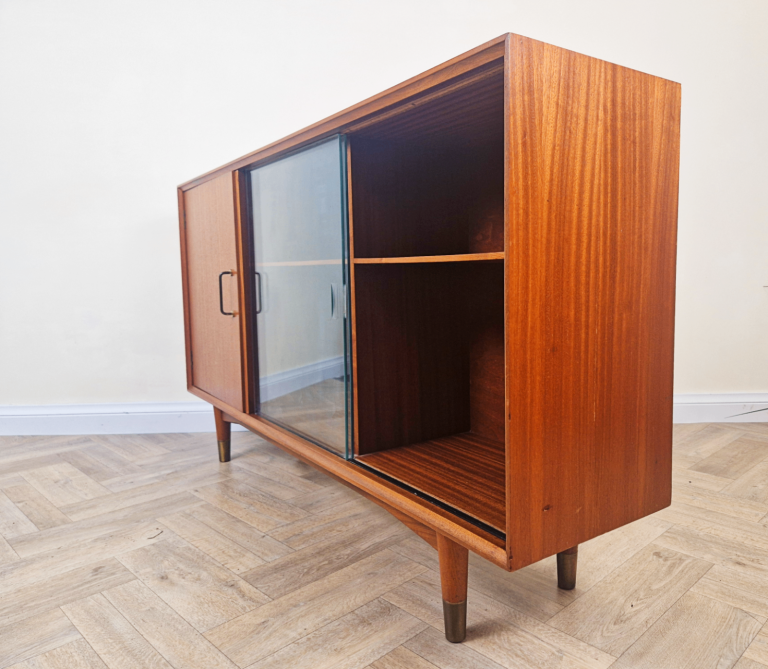 Vintage Mid Century Danish Design Medium Teak & Glazed Glass Sideboard Bookcase