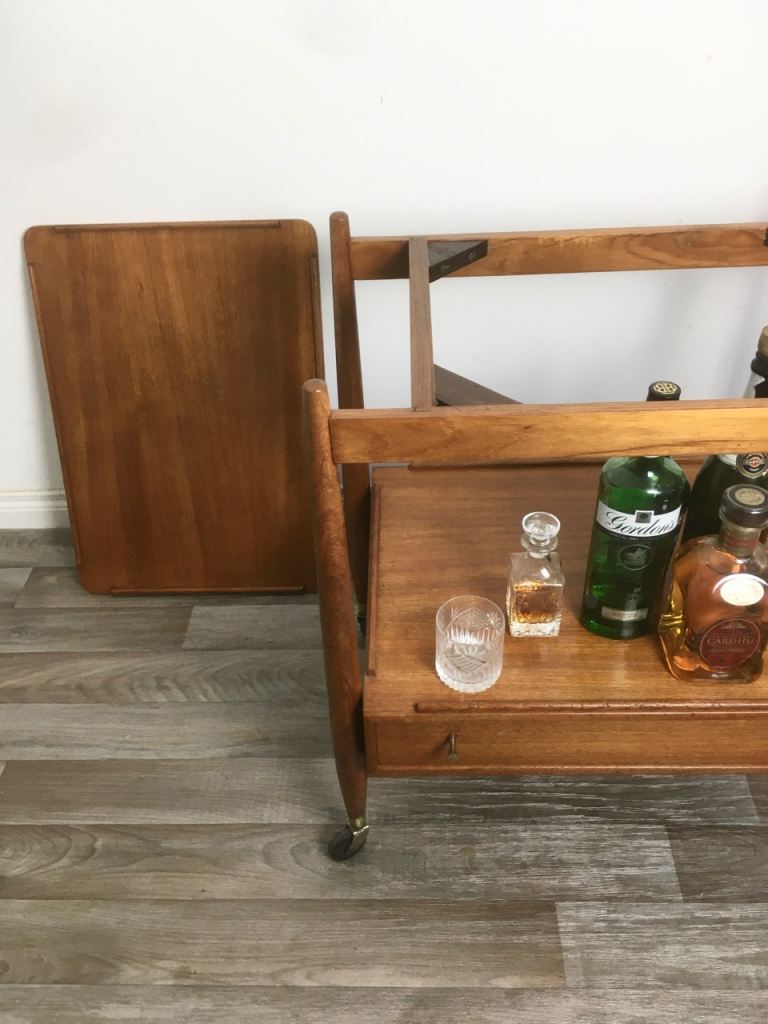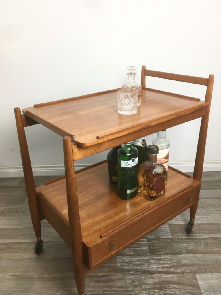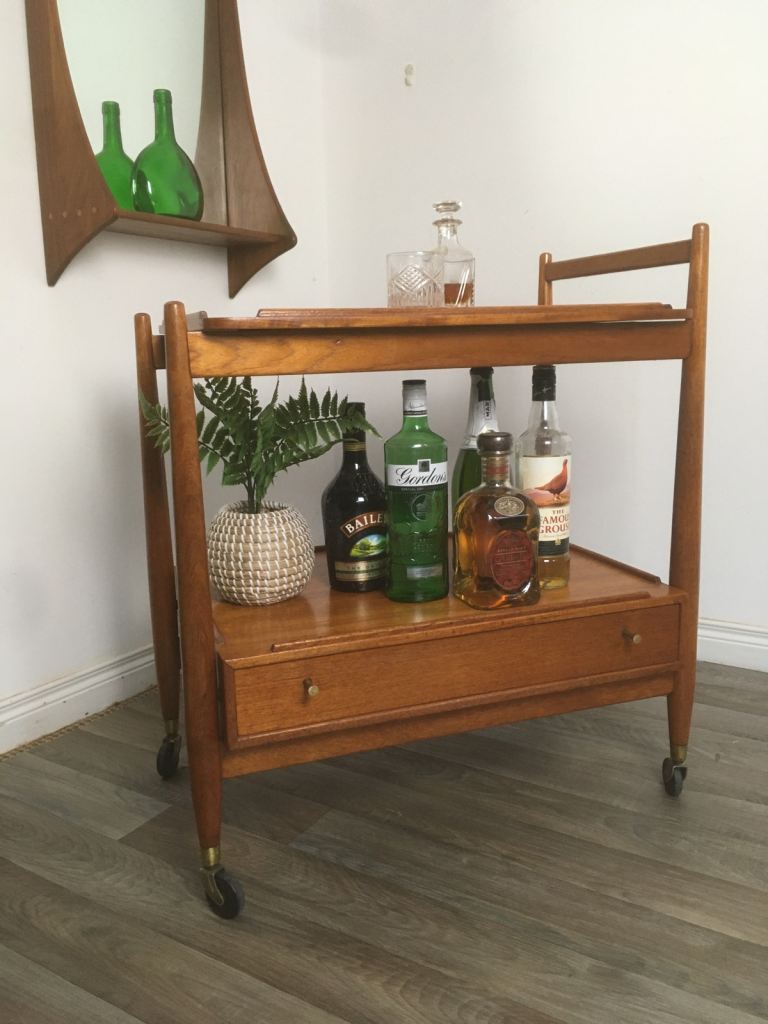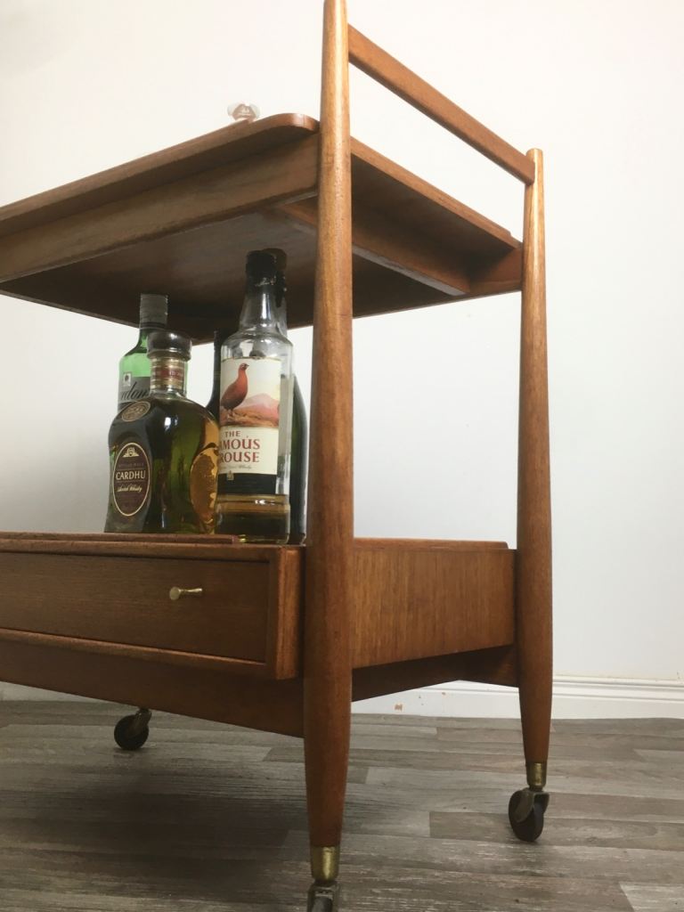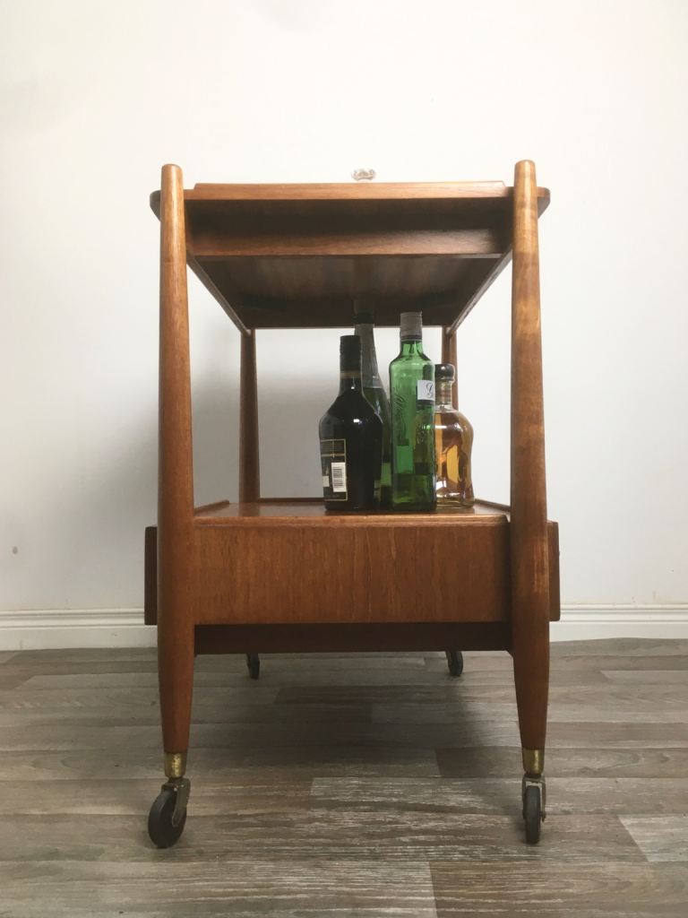 Vintage Retro Mid Century Teak Drinks Trolley White & Newton