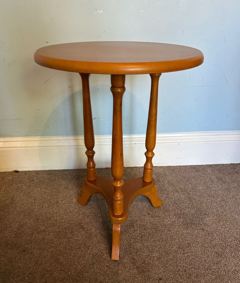 Vintage Round Wooden Plant Stand / Side Table H22in/56cm Dia 15.5in/39cm Good condition D335