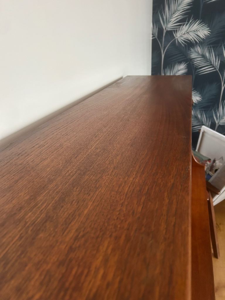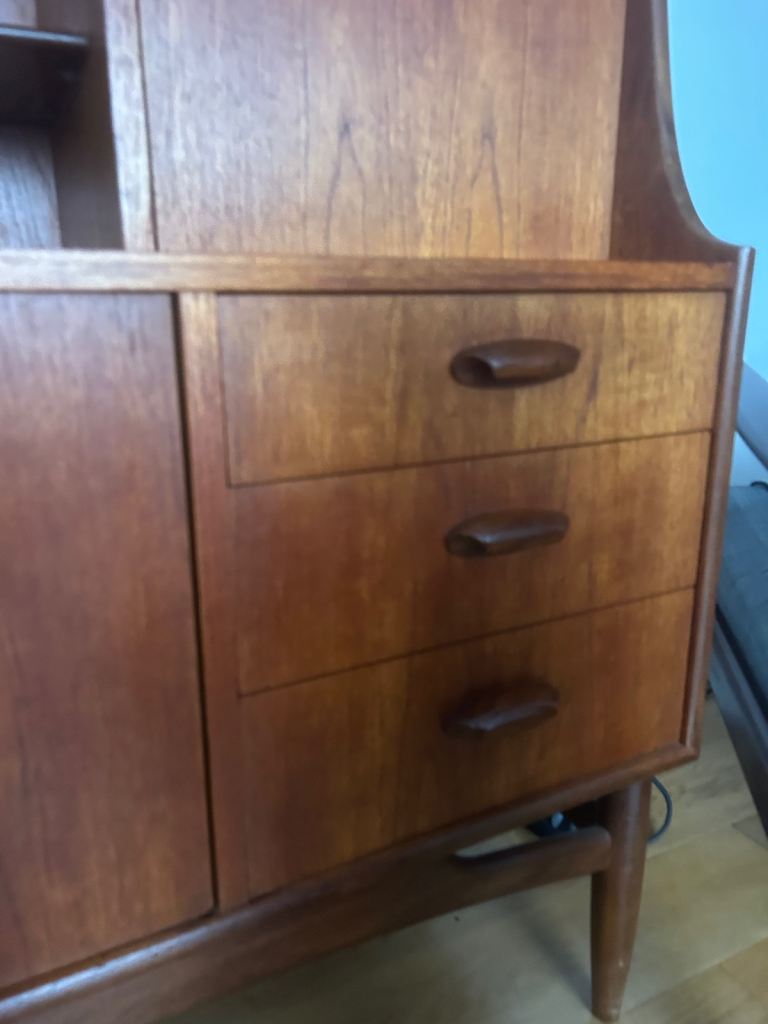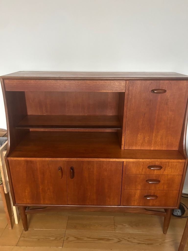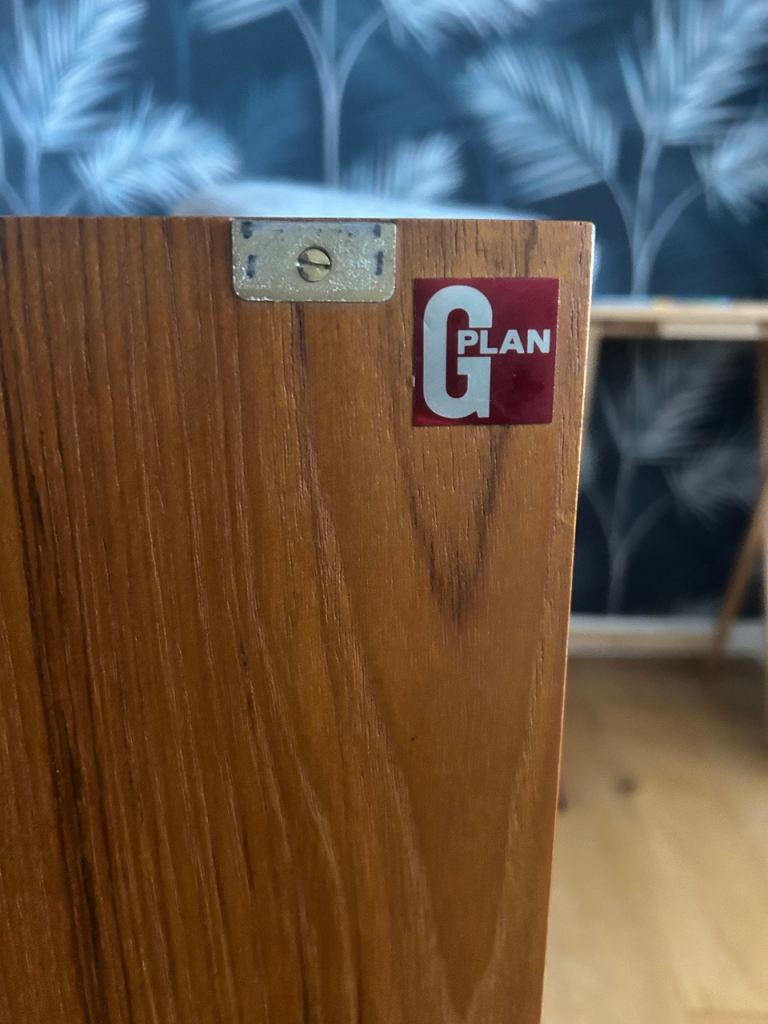 A wonderful vintage G-plan teak drinks cabinet, compact but with plenty of storage. We’re sadly selling it due to a house move. Top drawer and fold out drinks preparation area/drinks cabinet. Three large drawers and a two door cupboard with two shelves for storing glasses or other items. Wood in excellent condition with no obvious marks or stains. Collection only.