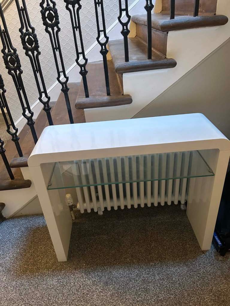 Posting for 4+ yearsWhite Gloss Console Table with Glass Shelf