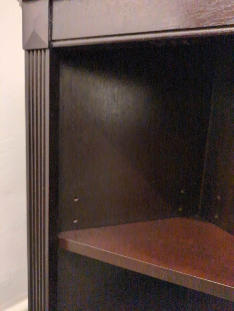 Solid wood, corner unit. Could be attached to the wall.