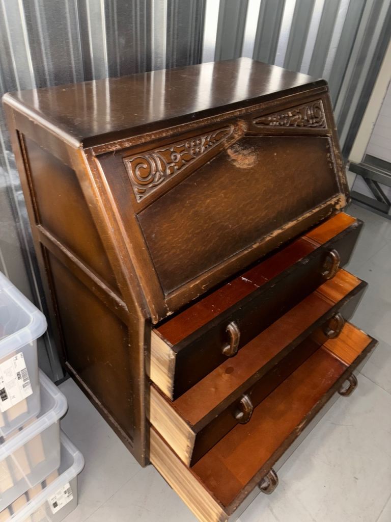 Charming vintage writing bureau for sale. Solid wood, in fair condition, perfect for home office or study, living rooms or dining room. For collection only.