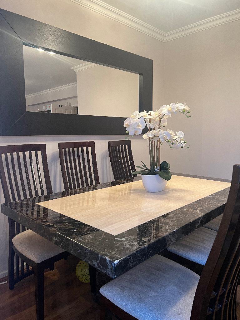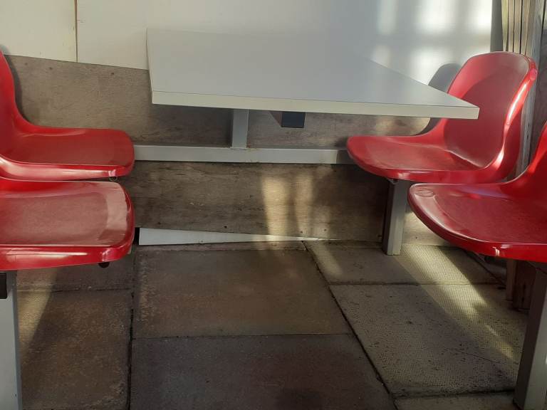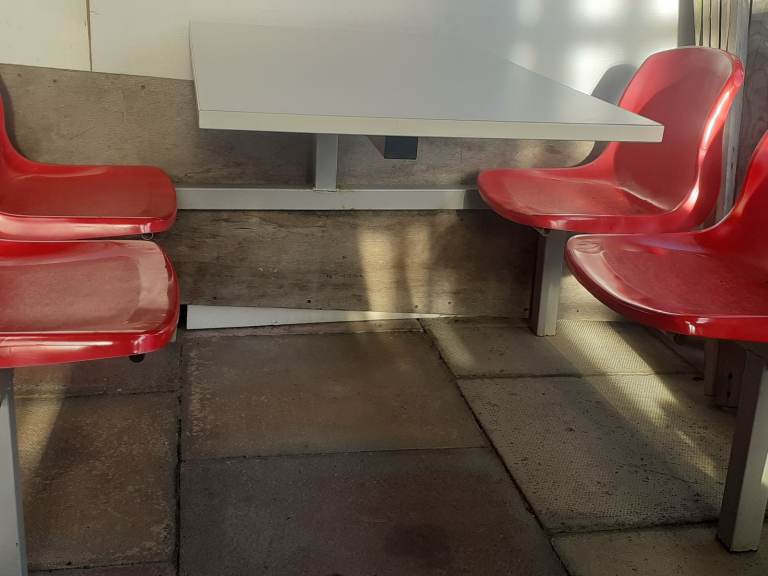 Cafe style table and chair set on a plastic coated metal frame, Inside or garden room or conservatory ect.