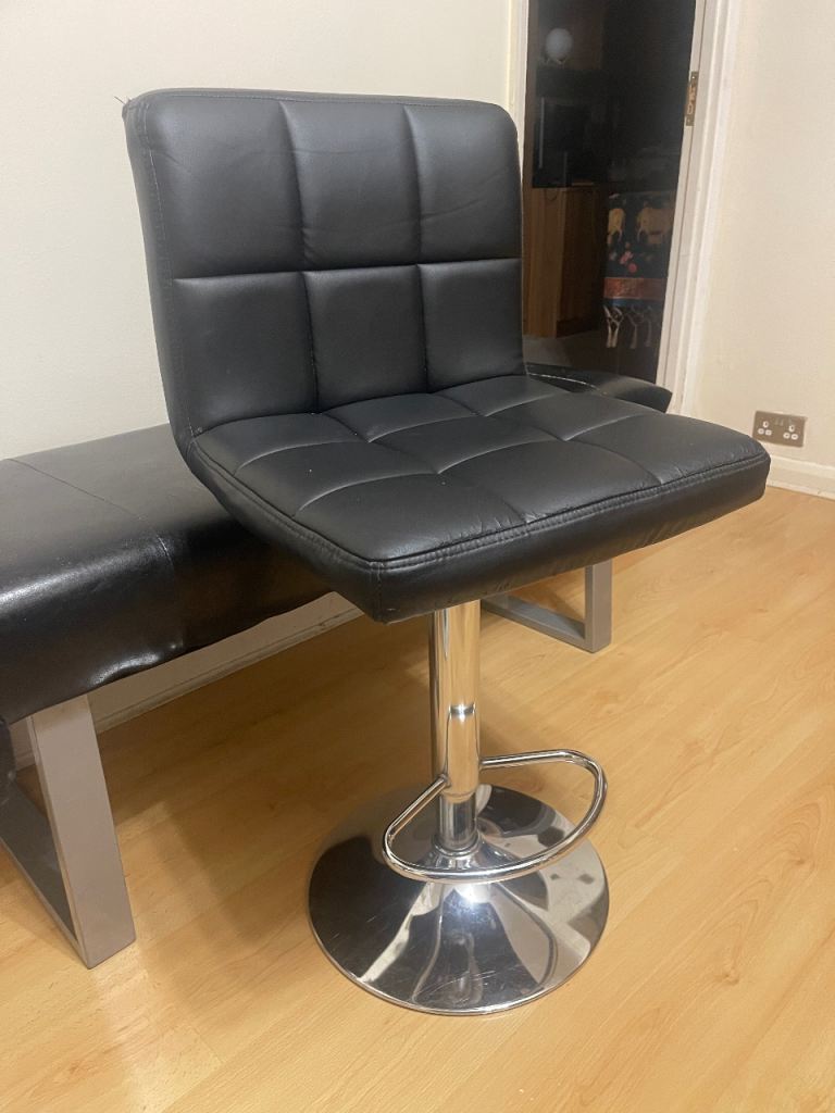 Posting for 8+ years2xBlack Faux Leather Bar Stools Adjustable Height Chrome Base, Kitchen/Breakfast