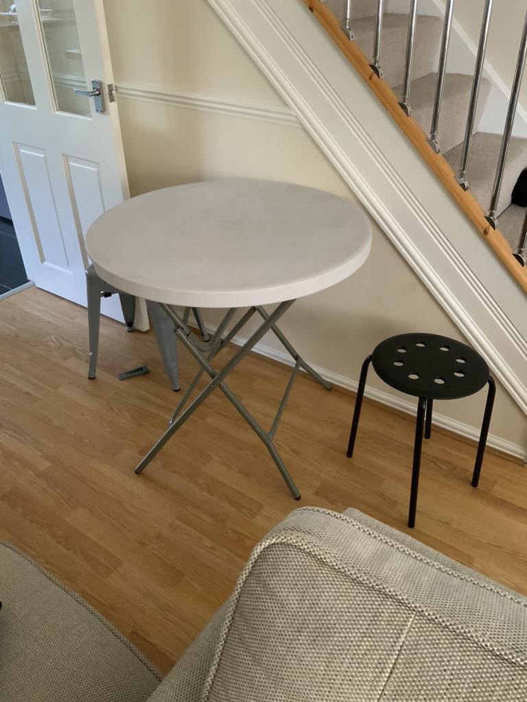 ALL WEATHER STURDY FOLDING TABLE. GREY RIGID FOLDAWAY FRAME. HARD PLASTIC TOP. 80 CM WIDE X 75 CM HIGH. CAN DELIVER IF LOCAL.