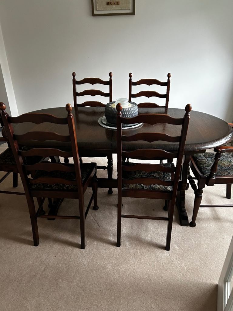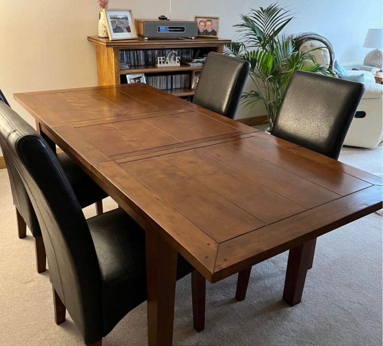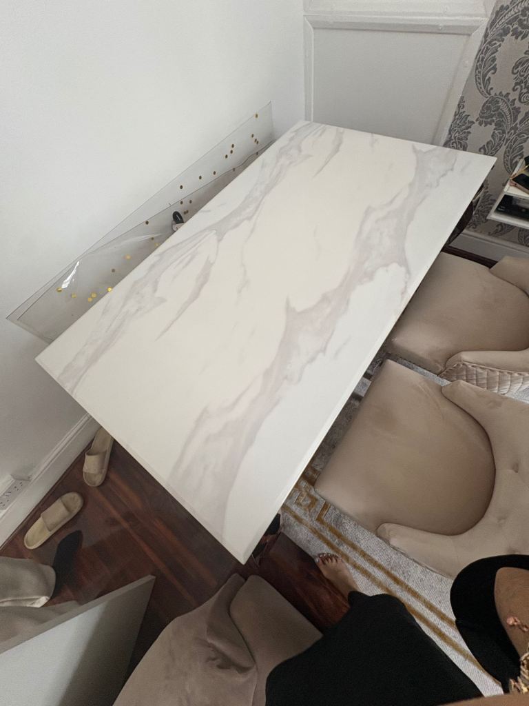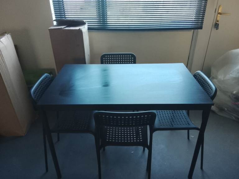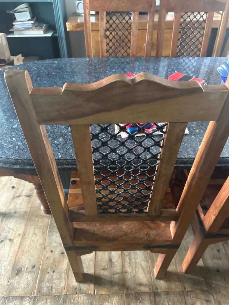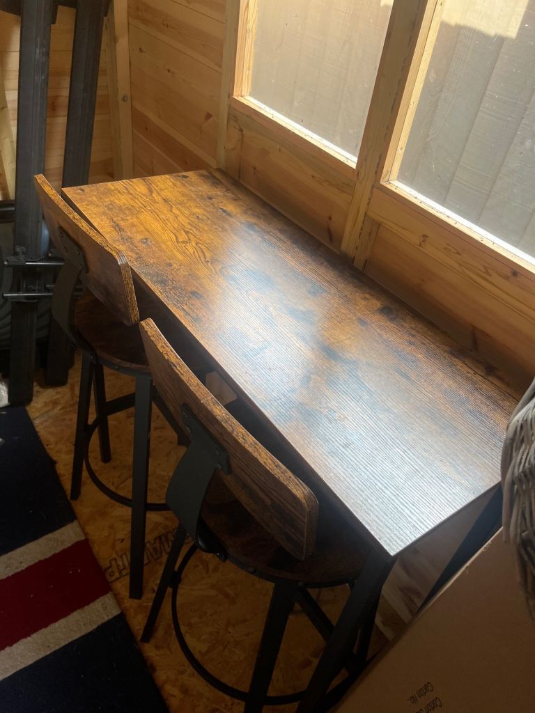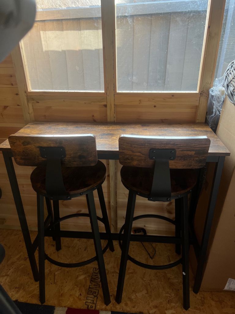 The table and chairs were originally bought separately so the chair height is very close the to the table top as you can see in the picture… they are more for decorative purposes then actually sitting at the table!