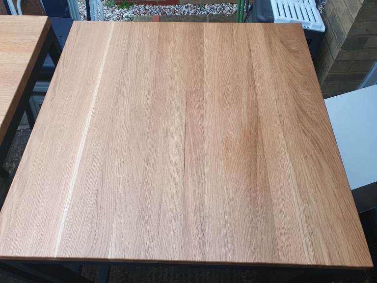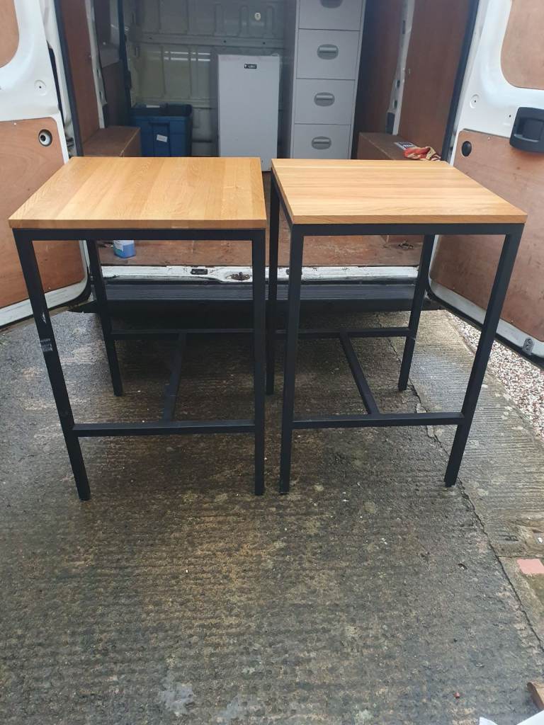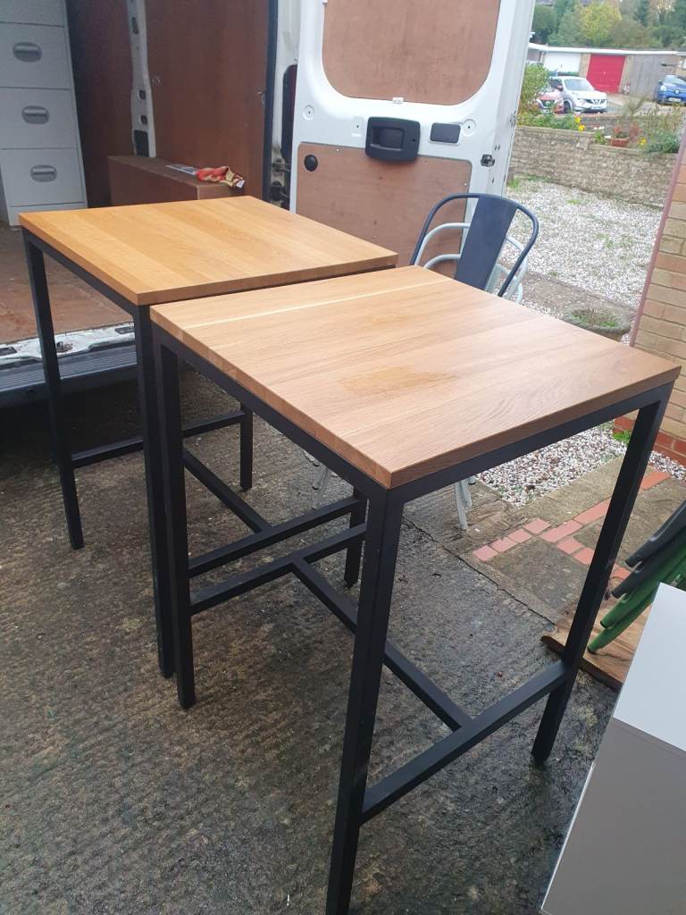 Manhattan sturdy bar table with a solid oak wood top and a black powder-coated aluminum frame. Great condition and can deliever if needed thank you height 110cm and width is 70cm