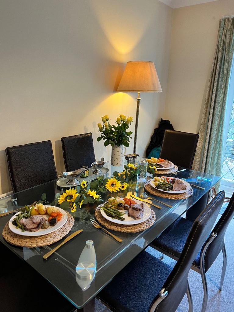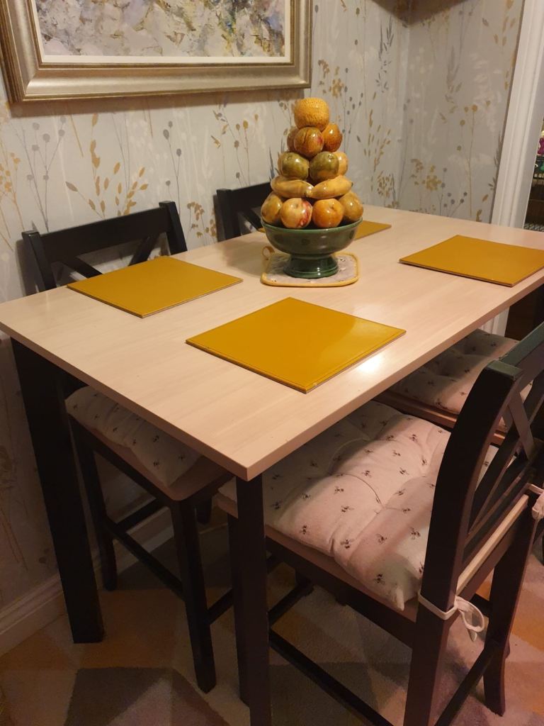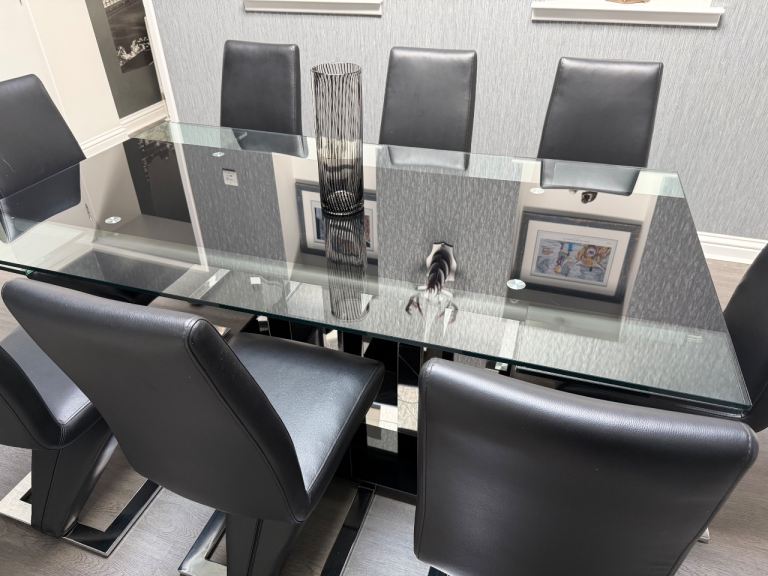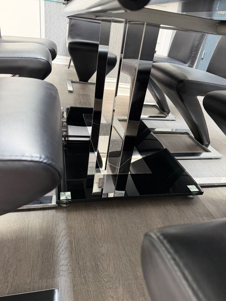 Posting for 6+ yearsBlack & Clear Glass extending Dining Room table & 8 chairs