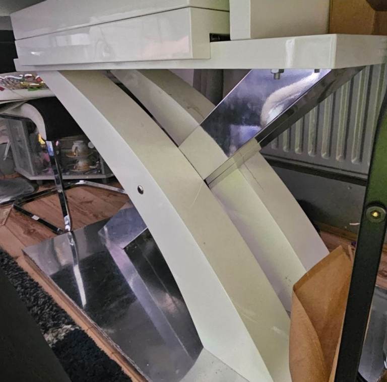 Width-900mm , Lenth - 1605mm and when extended its 2205mm. Table In fair condition 3 chairs are in very good condition while 3 are in fair condition. Collection from Bethnal Green, E2