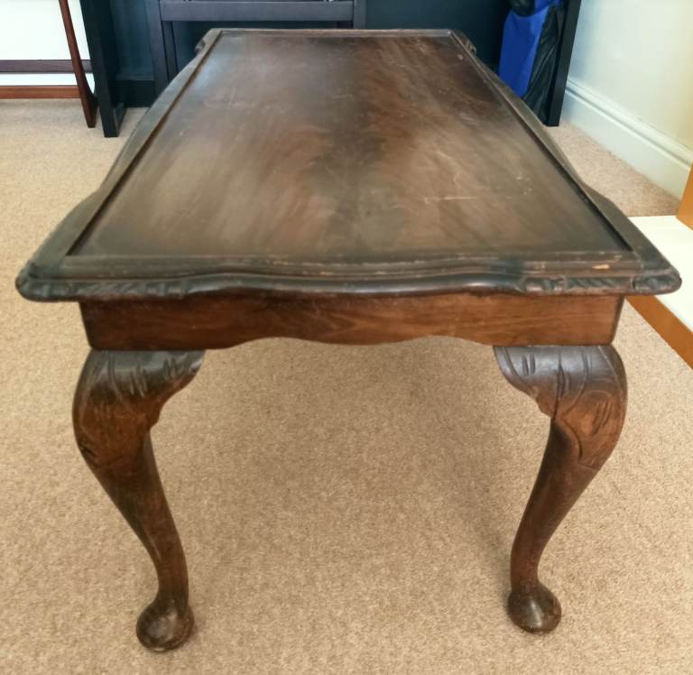A solid wood antique coffee table in good condition is looking for a new home. It measures roughly 97cm long, 48cm wide, 43cm in height, ideal for your living room.