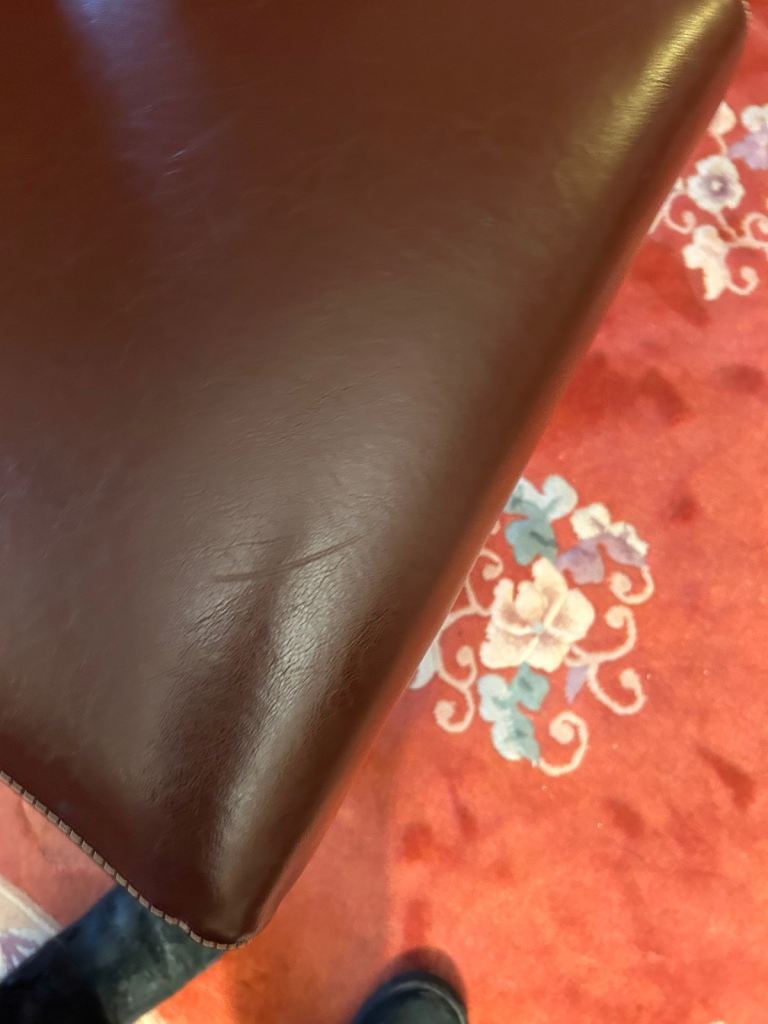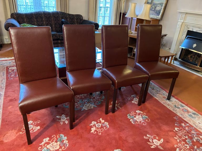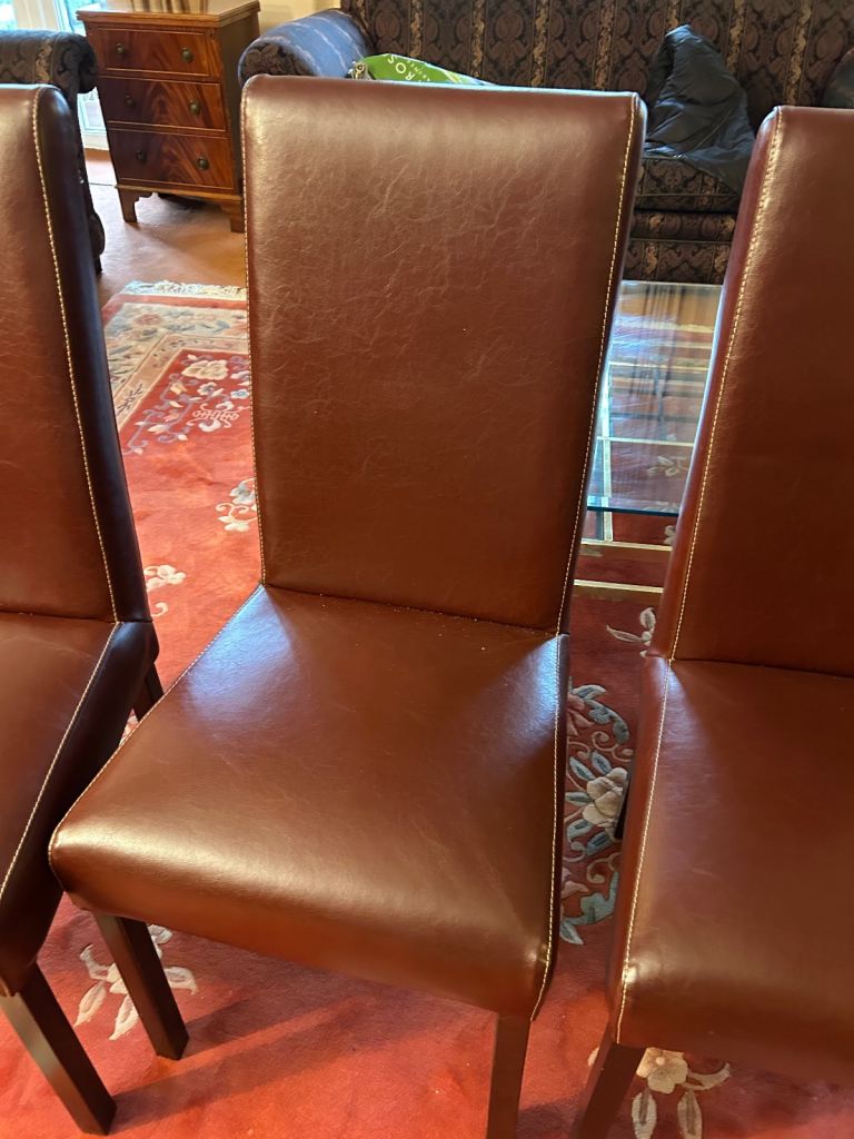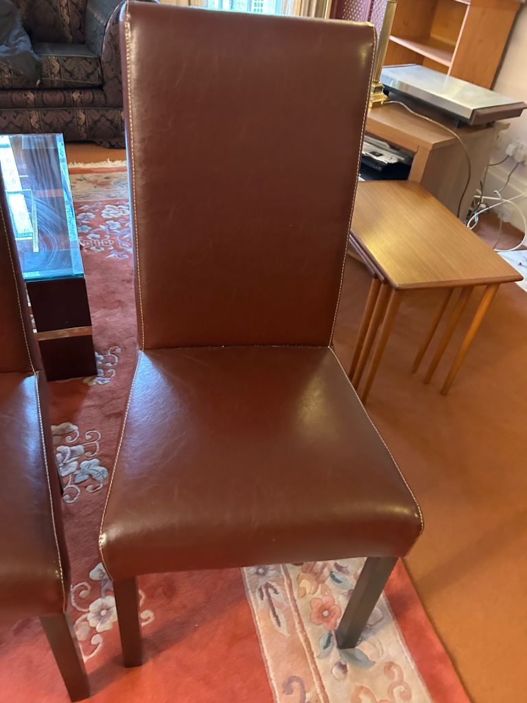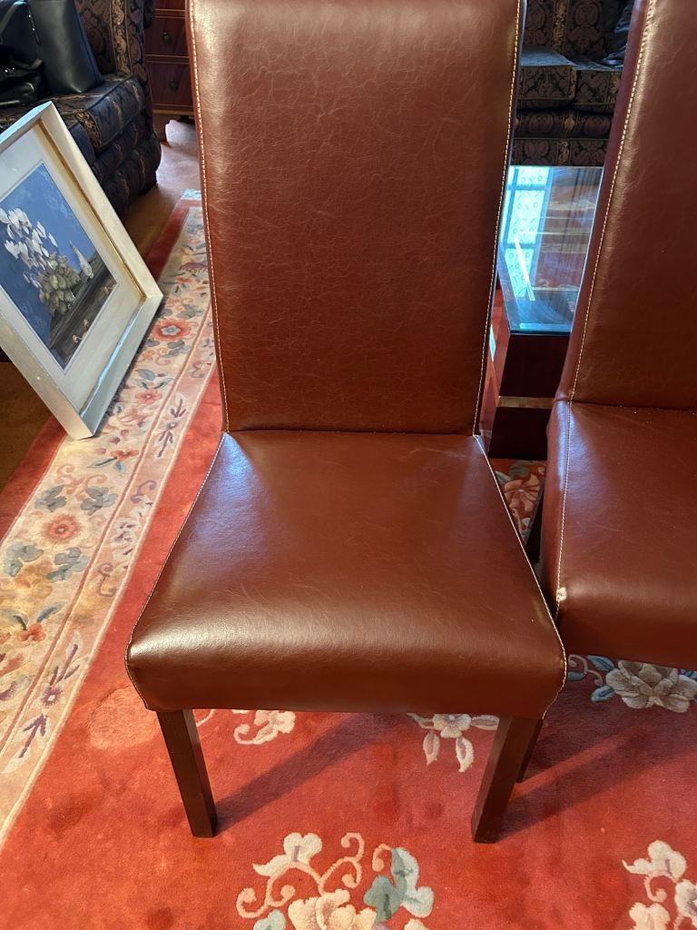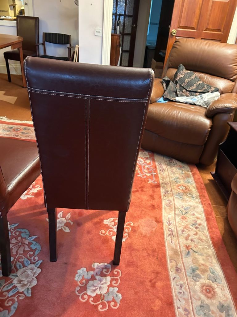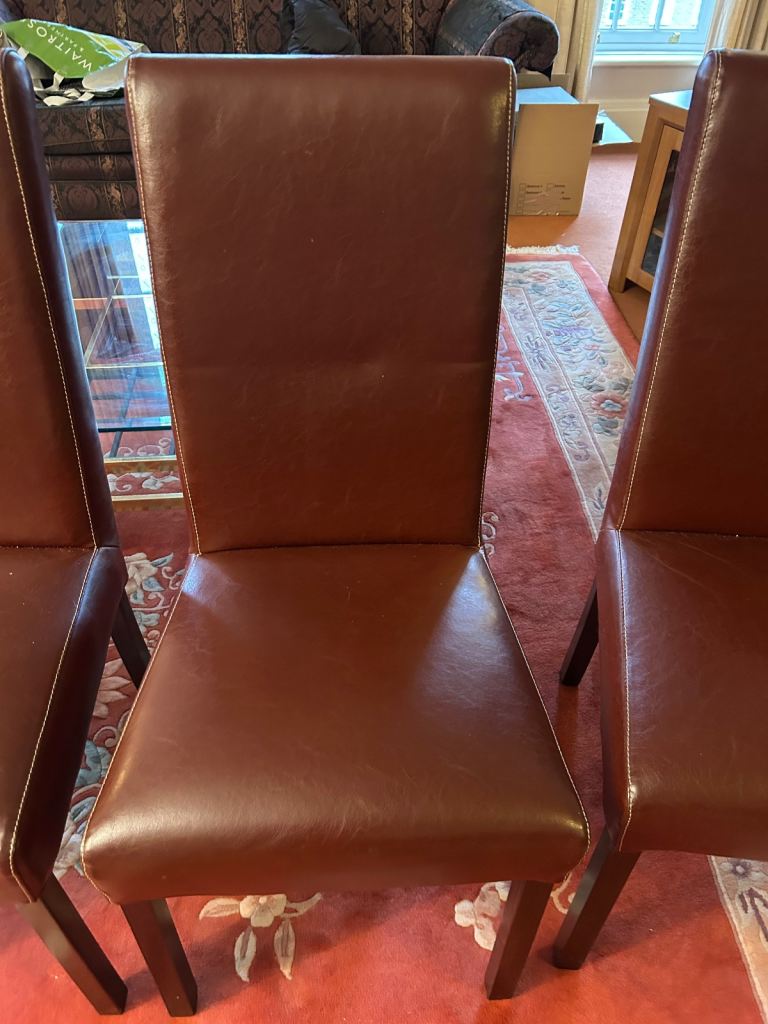 Brown faux leather and wood high back t stitch dining chairs dimensions 45 cm w x 47 cm d x 1 m h