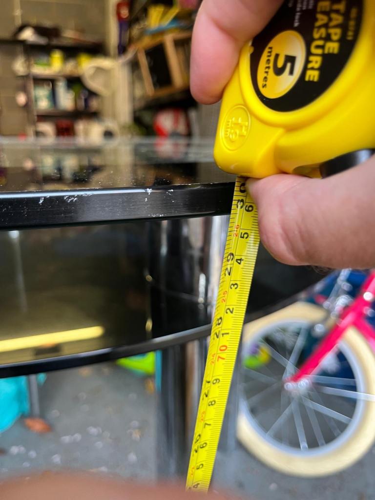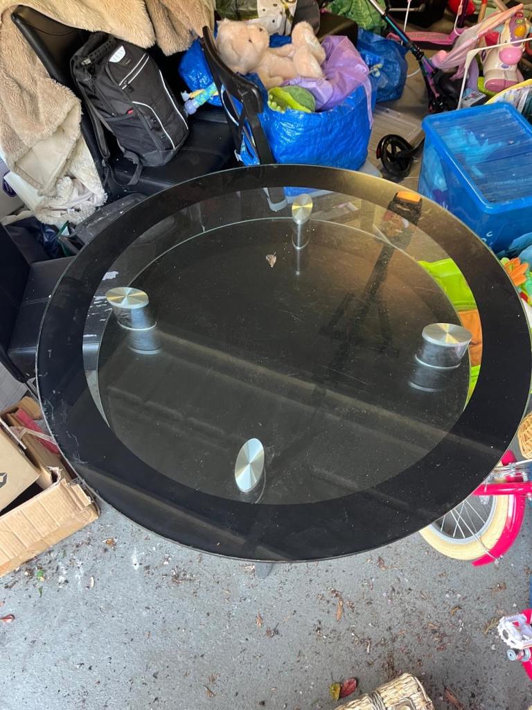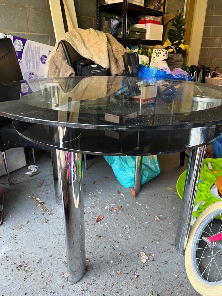 Good quality heavy glass table with shelf. Superficial scratches as per pictures. Giving it away as need to free up space. It’s the table only, no chairs with it.