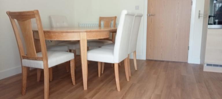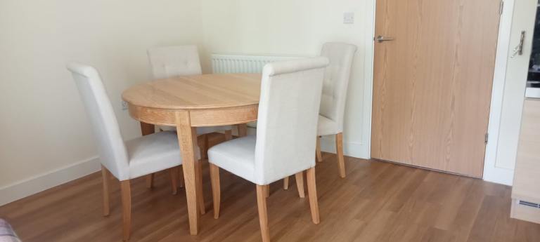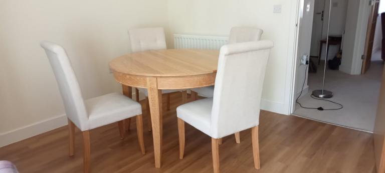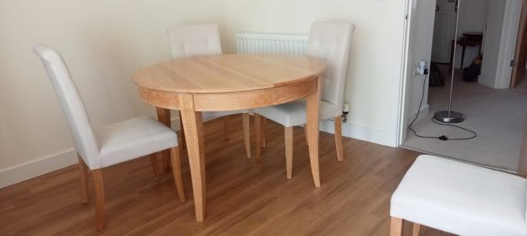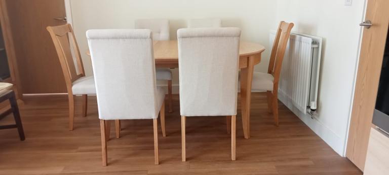 Posting for 10+ yearsClaremont Extendible Solid Light Oak Dining Table and 6 Dining Chairs