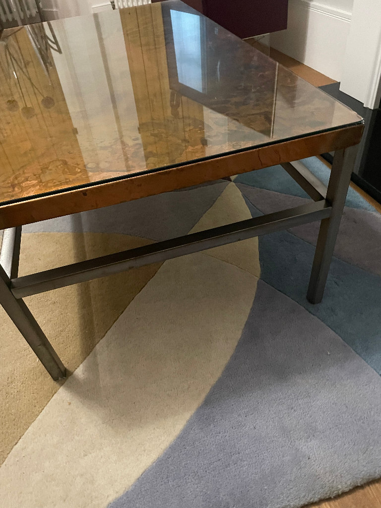 Copper topped coffee table with glass top (optional) and stainless steel frame