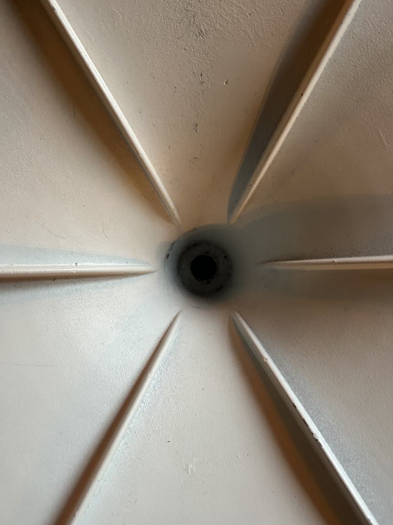 This Saarinen Tulip Table is all white with a white lacquered cast aluminium base and melamine top - Diameter: 120cm