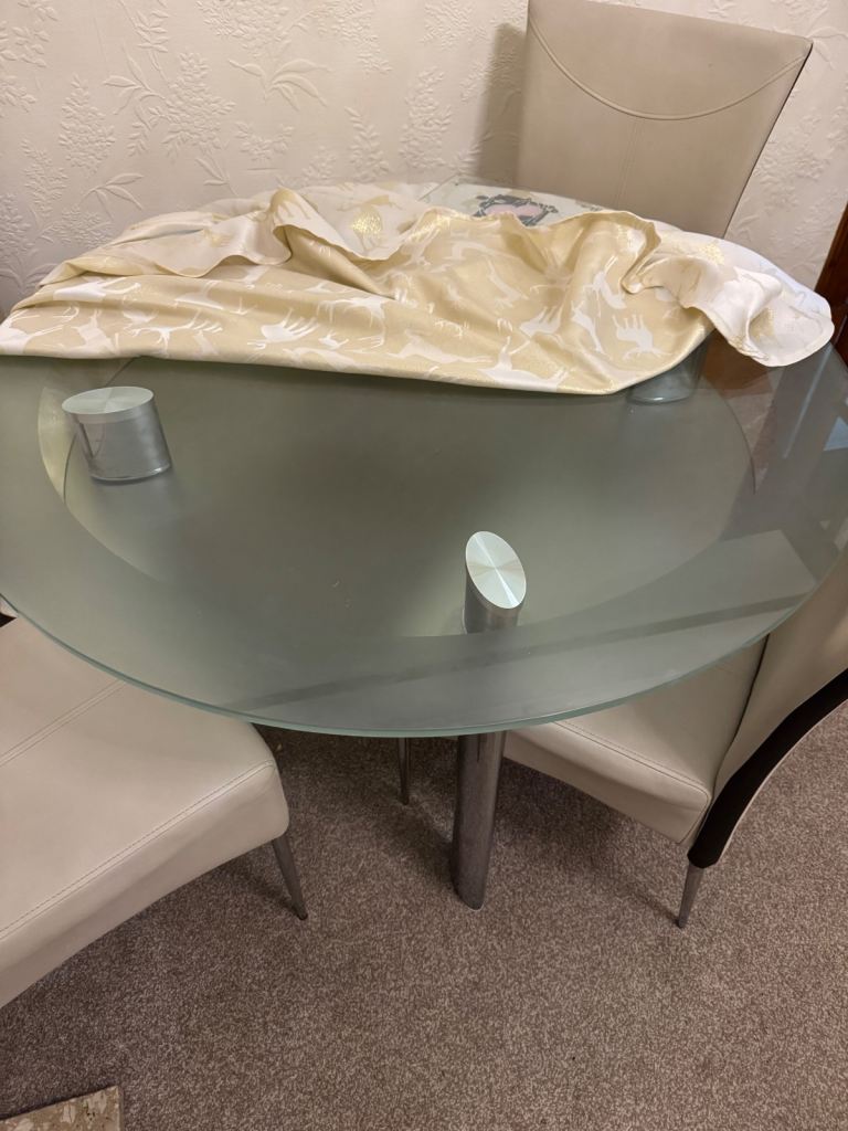 Set of 4 leather chairs with round table chrome legs