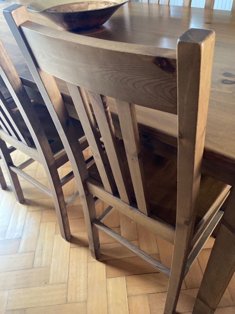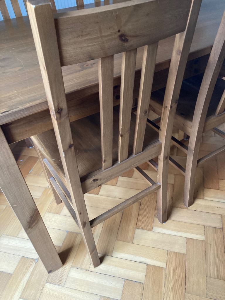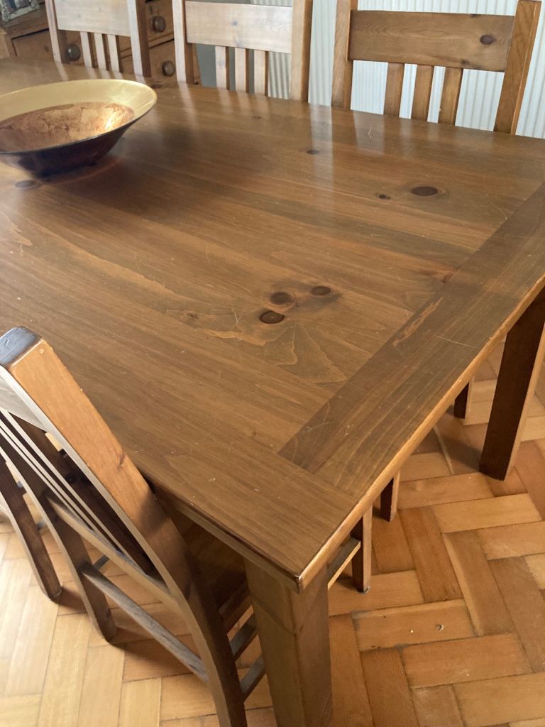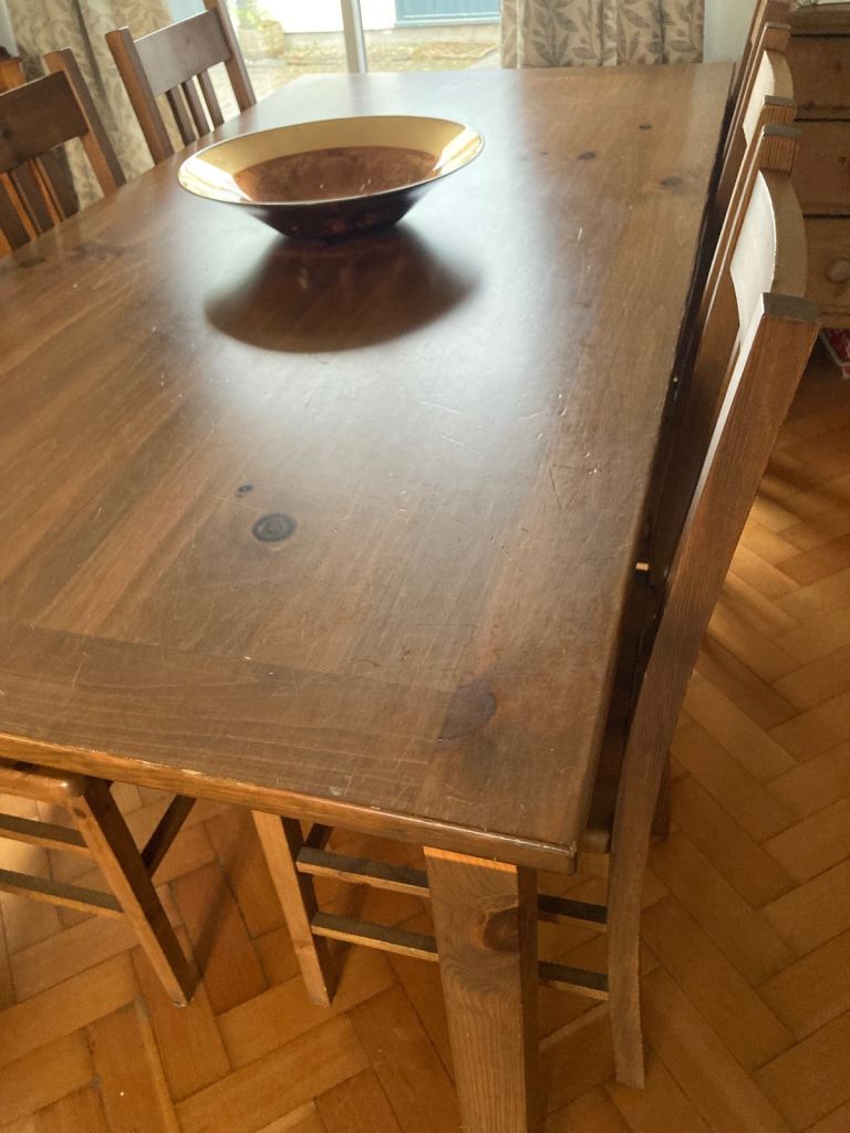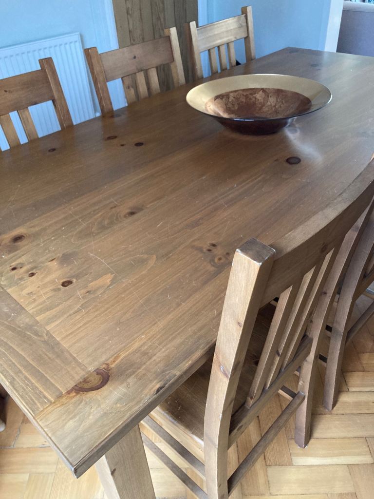 Wooden Dining table and chairs in very good condition. Bought some years ago from The Pier.