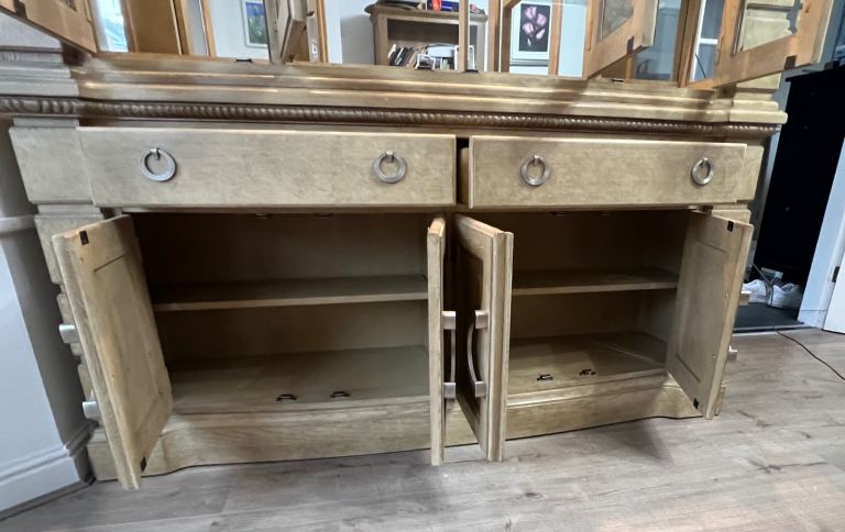 Sideboard/ display cabinet size: 216cm high x 178cm wide x 44cm deep.