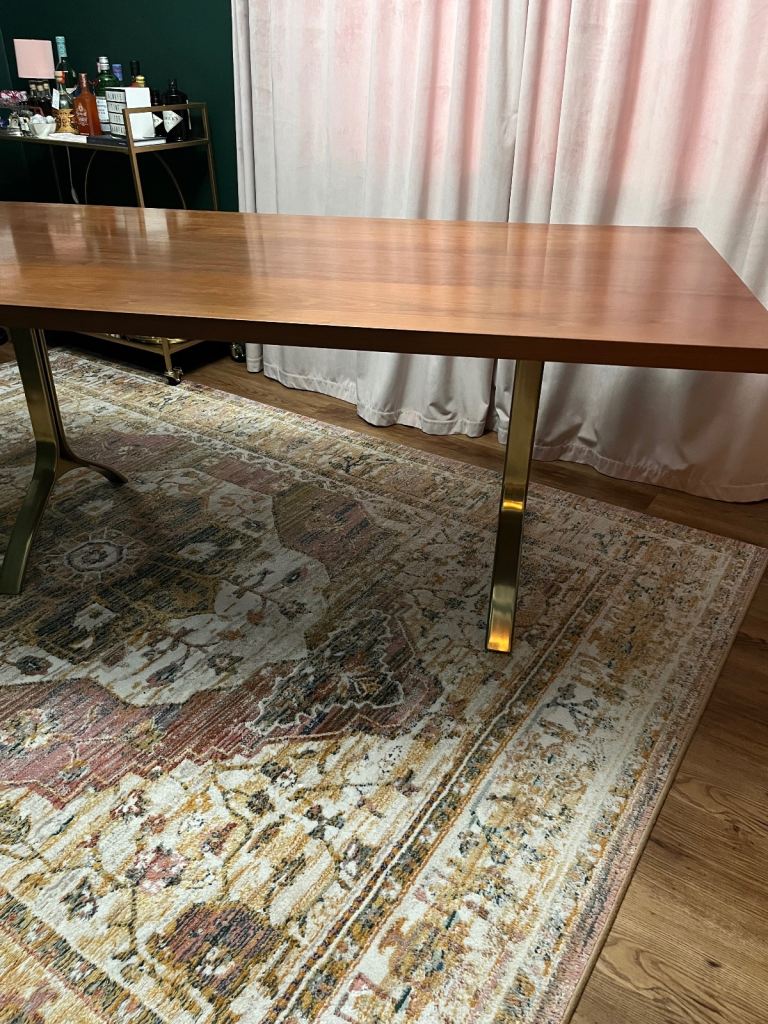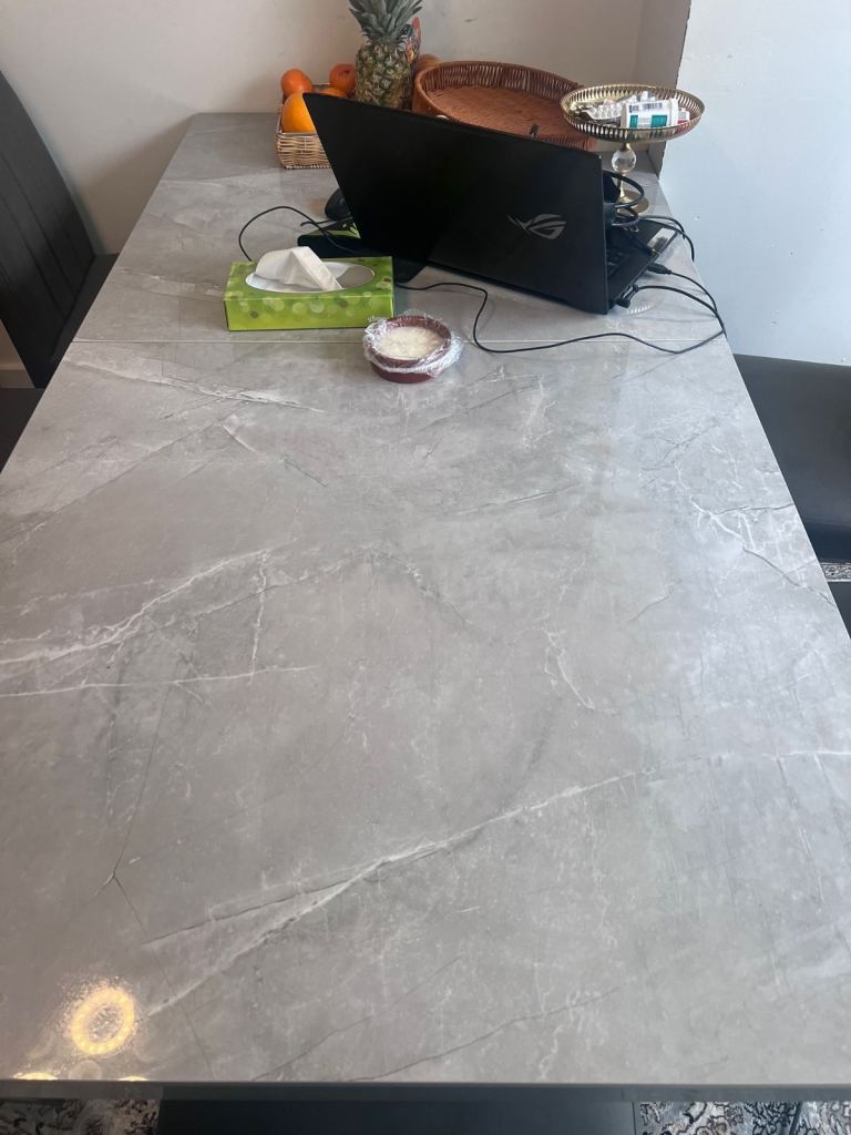 Sturdy metal table frame and durable, smooth melamine tabletop.