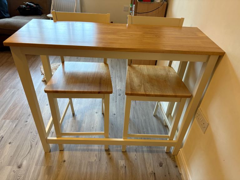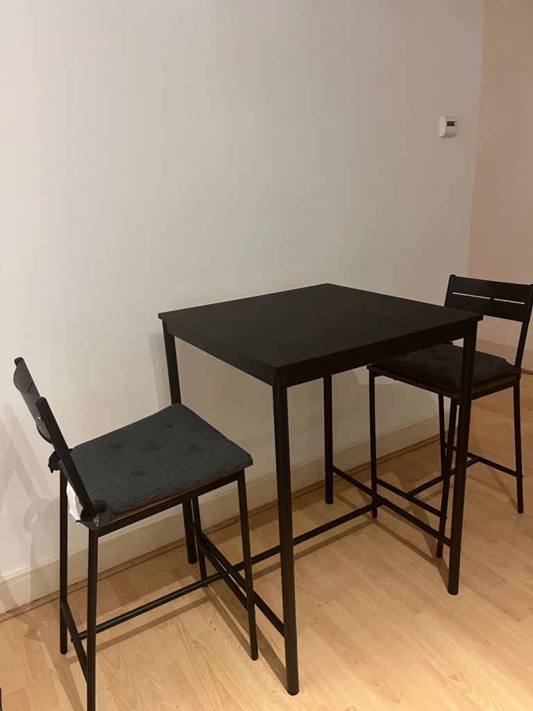 This table for 2 blends a warm wood expression with sturdy metal in a slim design.