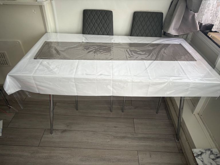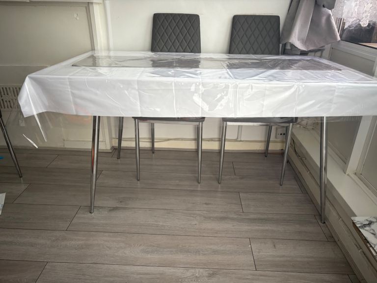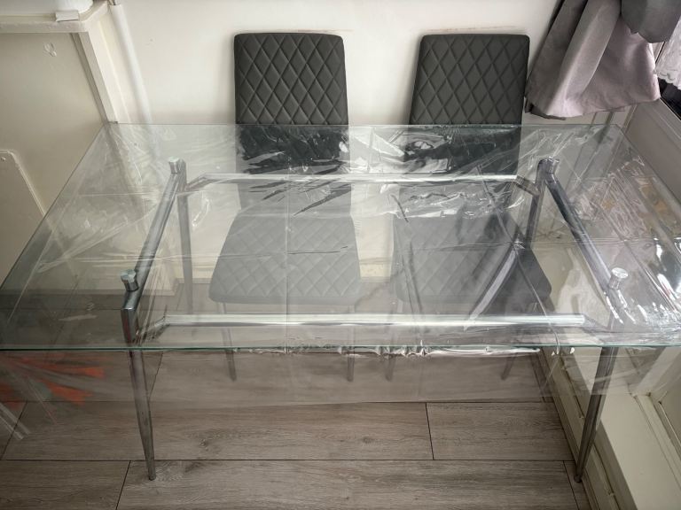 This stylish glass dining table is a sleek and modern centerpiece for any dining area. Designed to comfortably seat up to 6 people, it’s perfect for family meals, entertaining guests, or creating an elegant dining atmosphere. The table features a thick, tempered glass top that’s both durable and easy to clean, supported by a sturdy and contemporary base made from stainless steel. Its minimalist design adds a touch of sophistication to any home, blending seamlessly with both modern and classic décor. The table is in excellent condition and ready for immediate use. Bought it few months ago.