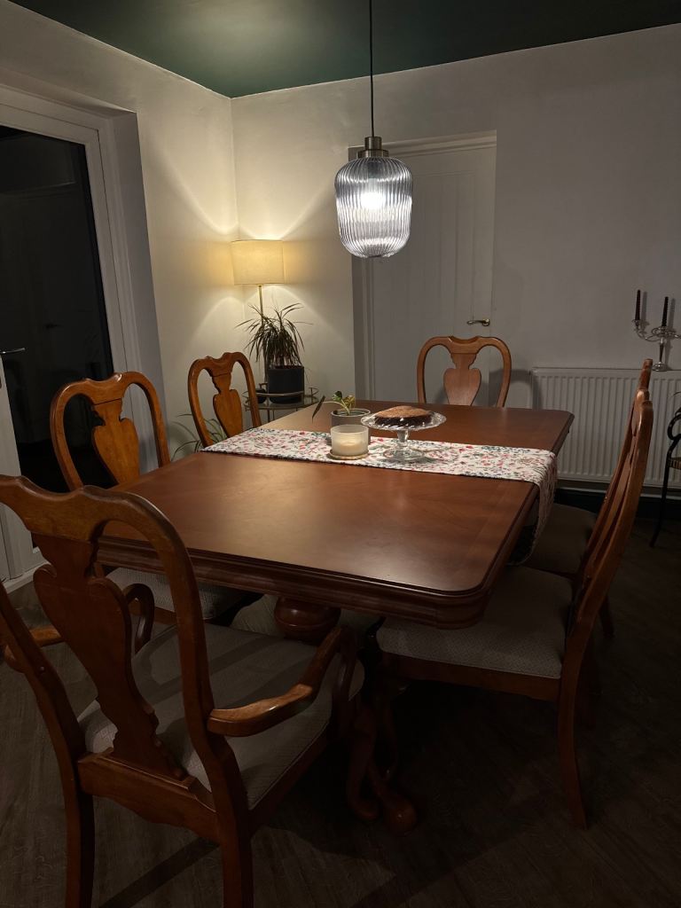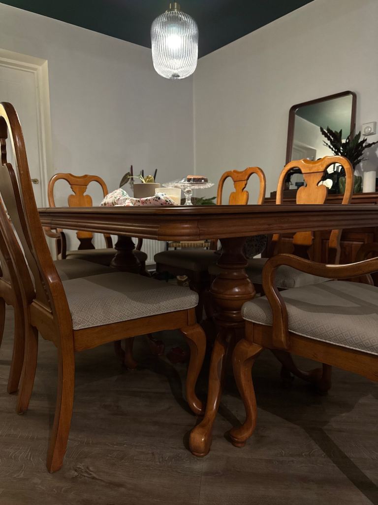 Open to offers, table in near perfect condition with minor wear and tear. Can seat up to 12 with included 2 table extensions in excellent condition. Legs come apart from table top, collection only!