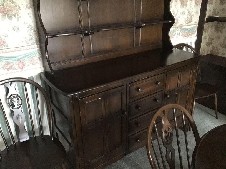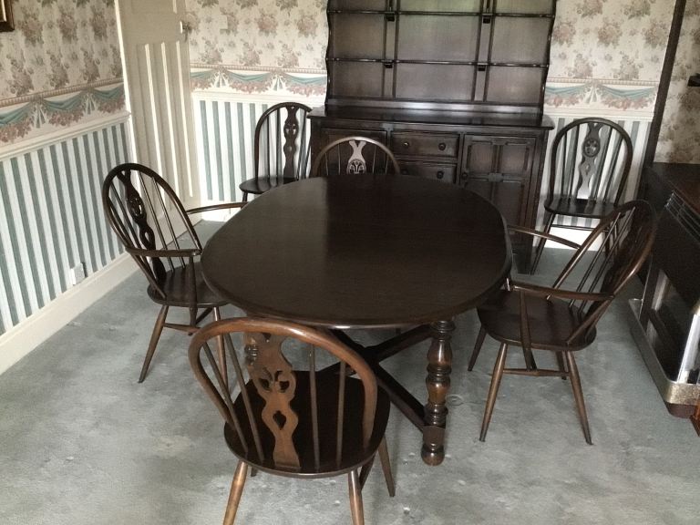 Posting for 4+ yearsErcol extended table 6 chairs 2 carvers and dresser