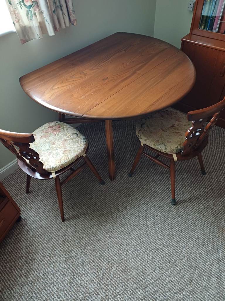 Ercol folding dining table and four chairs good condition smoke free home. Located in Faringdon.