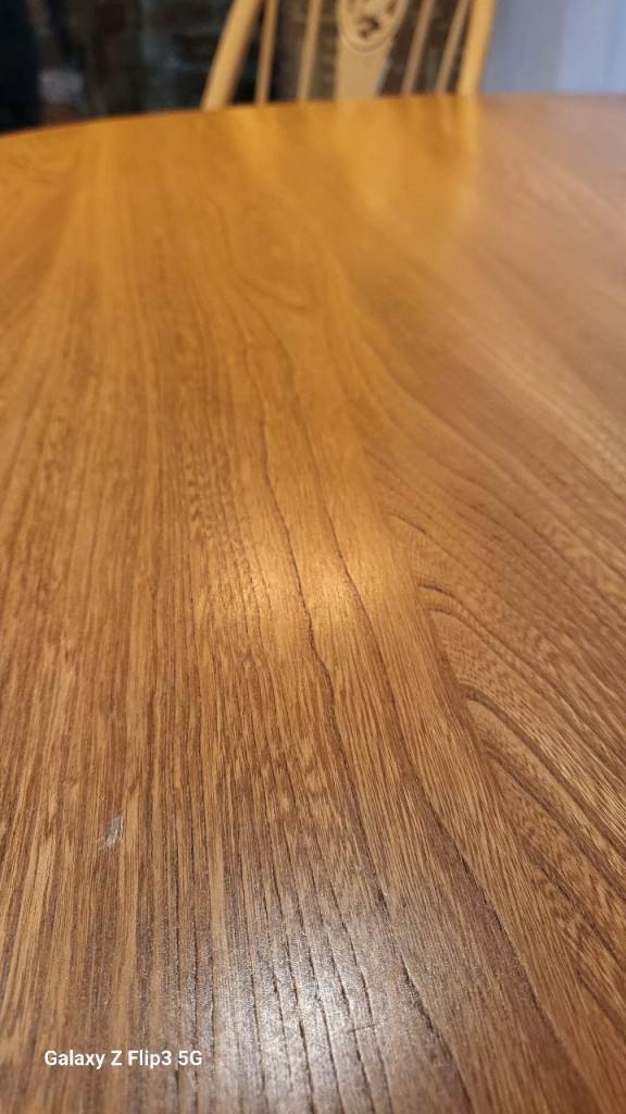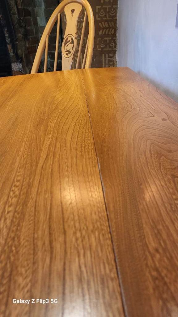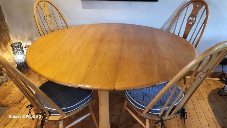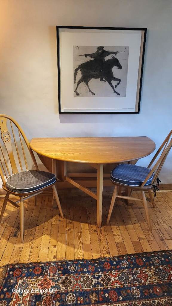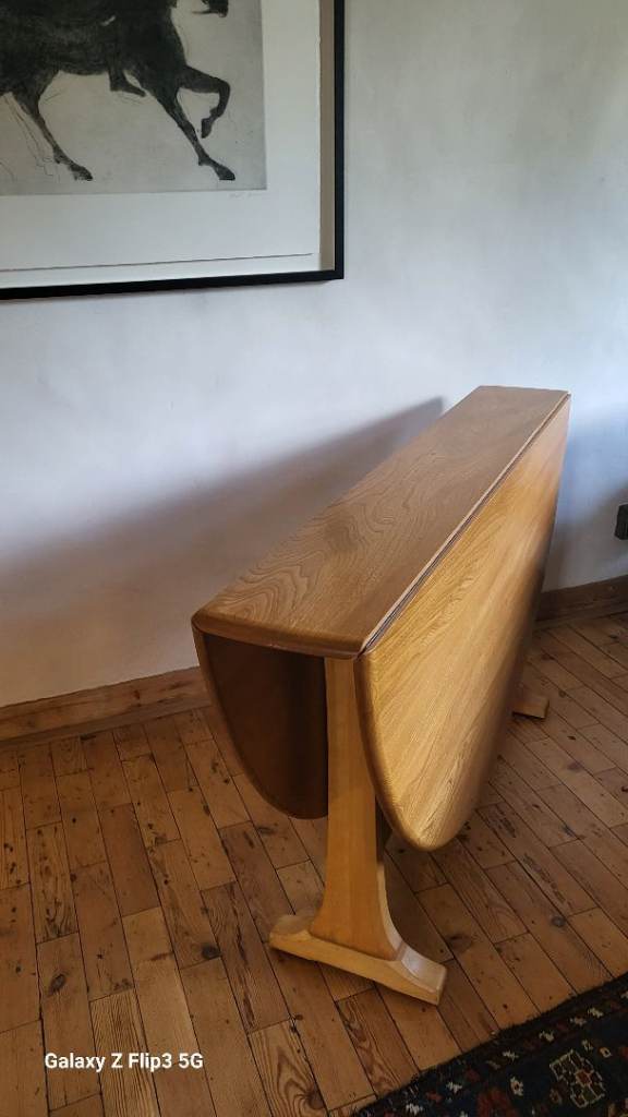 Ercol drop-leaf dining table. Both sides drop completely making it more versatile for storage.