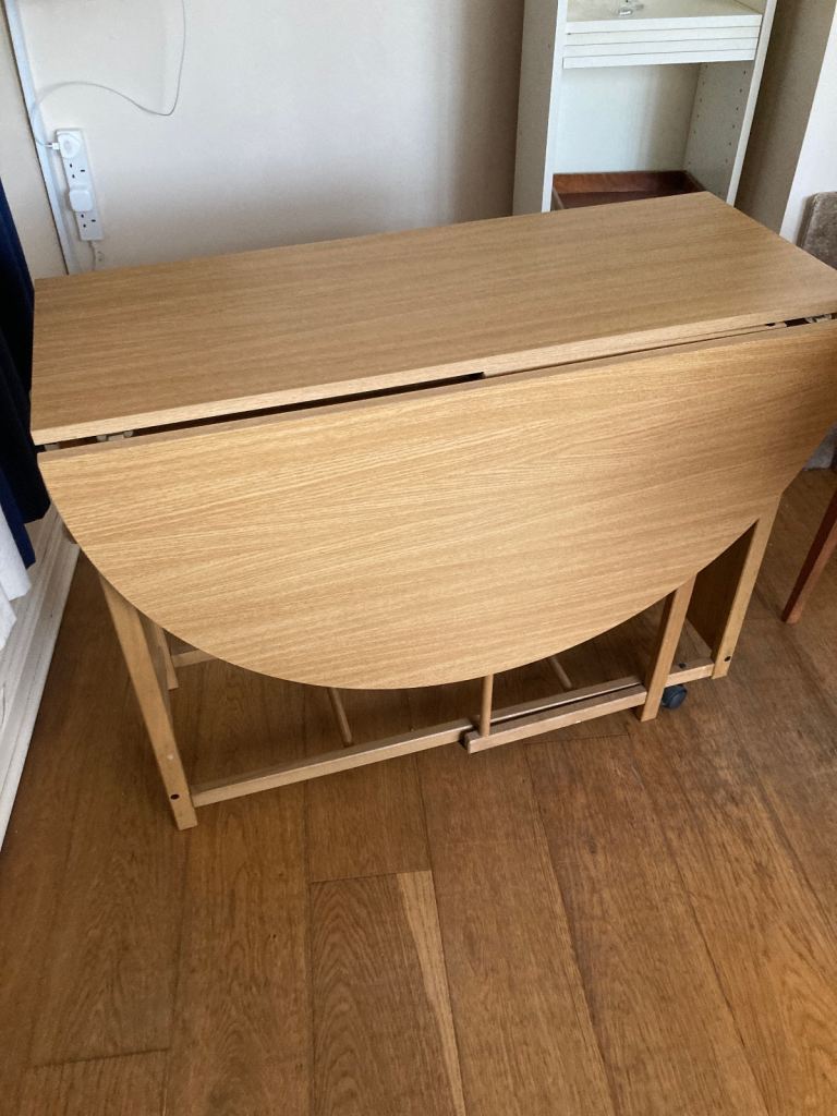 Small drawer on one side and a door to push in and store some foldaway chairs, if you wanted to.