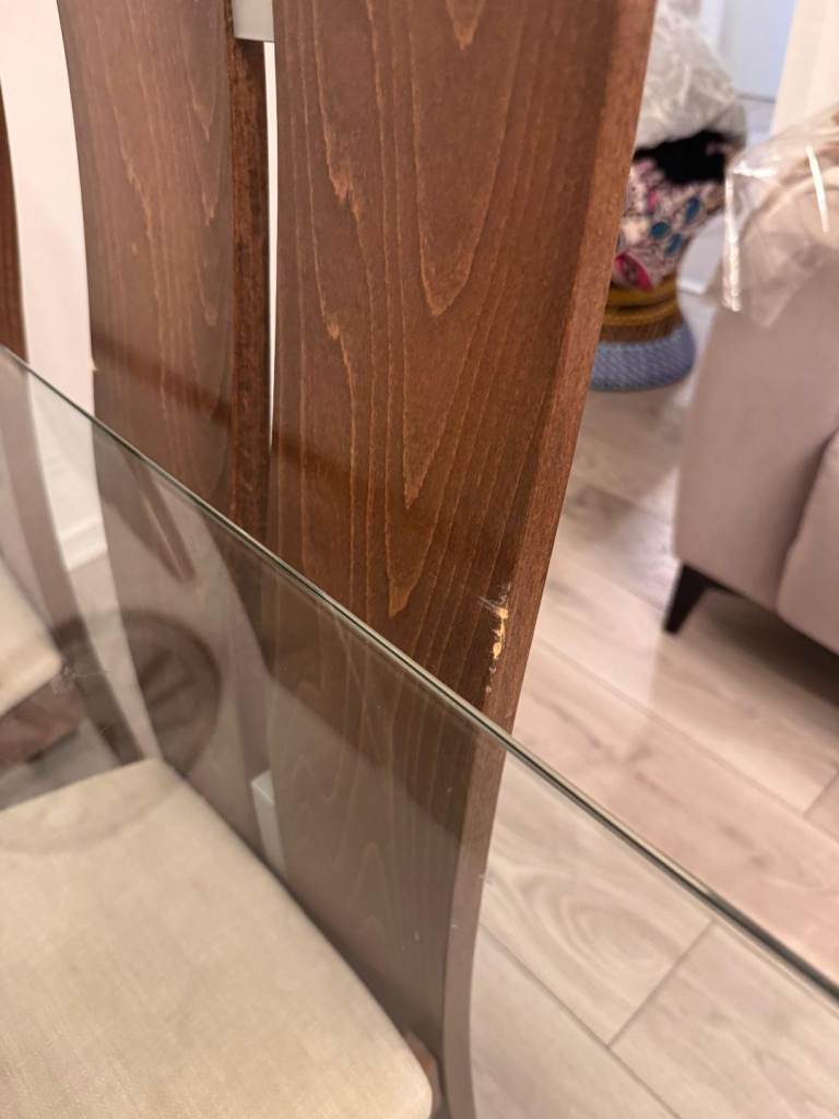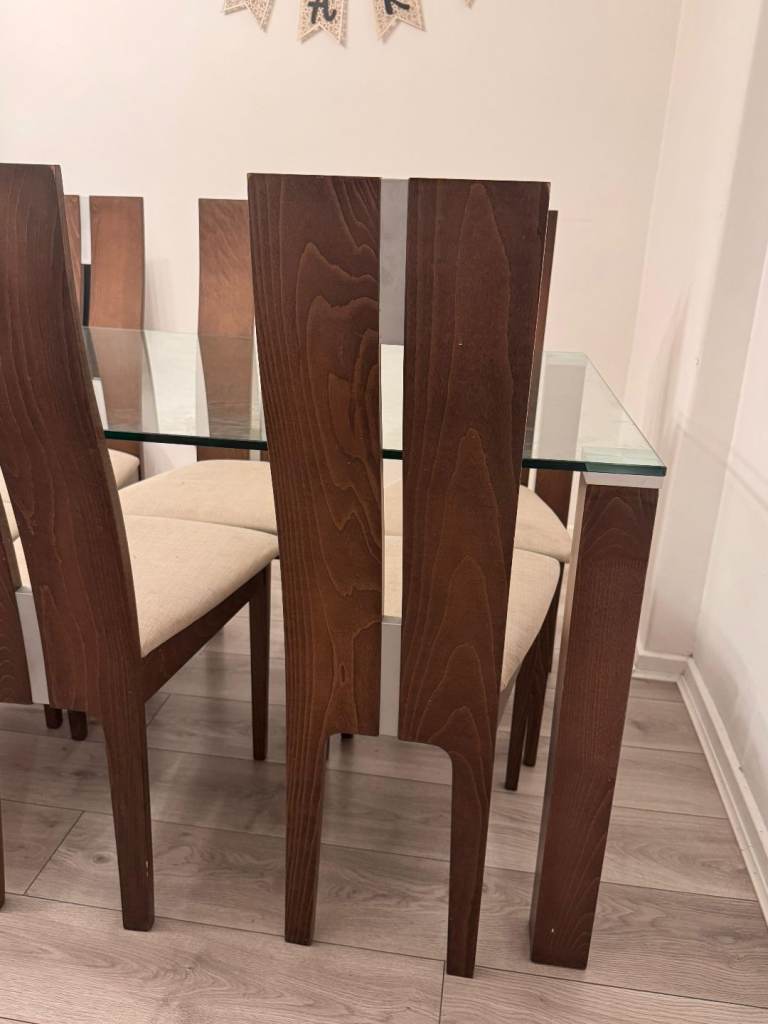 Posting for 4+ yearsGlass Dining Table and 6 Dark Wood High-Back Chairs Set