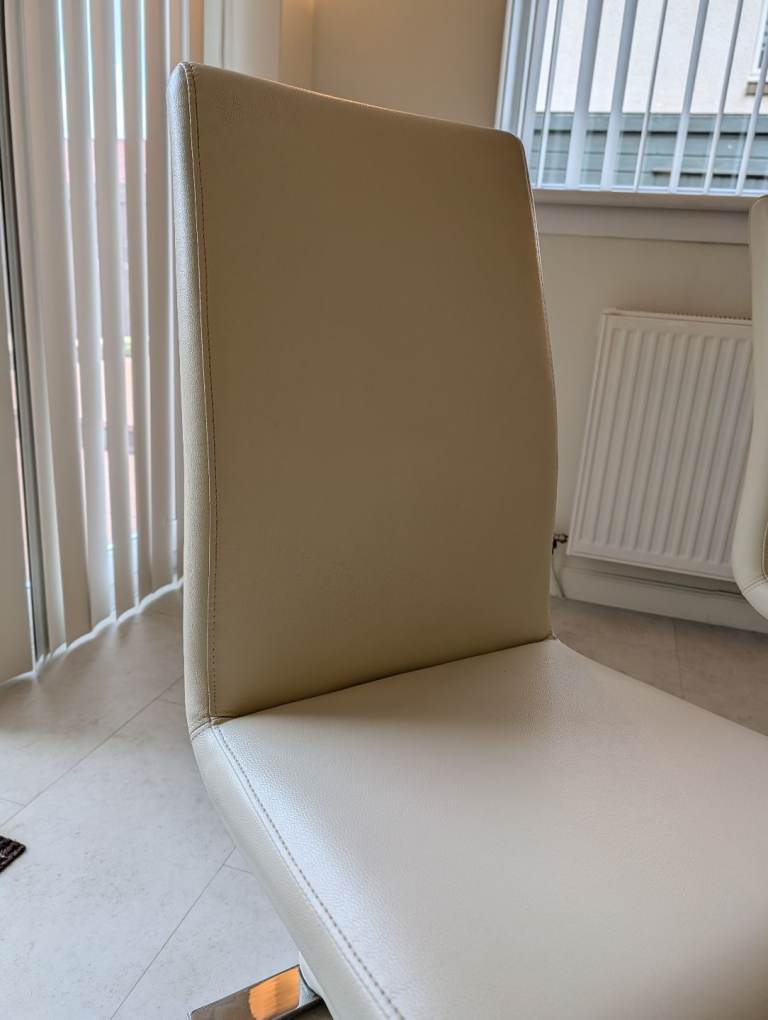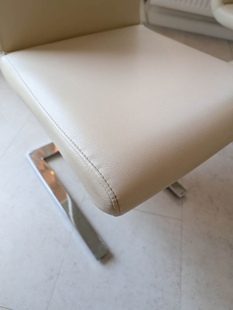4 cream leather chairs with chrome base H93cm and W 41cm