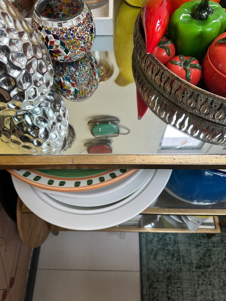 Posting for under a monthGold Metal and Glass Shelving Unit – Good Condition