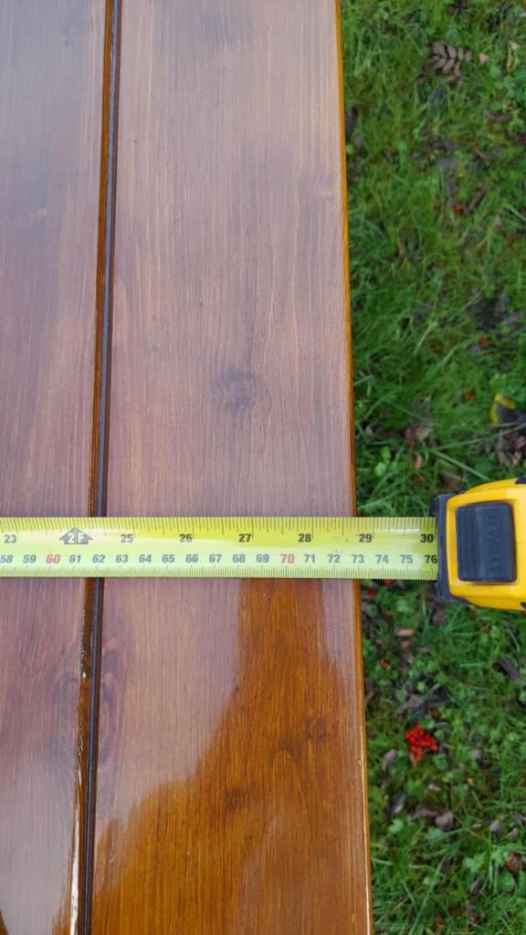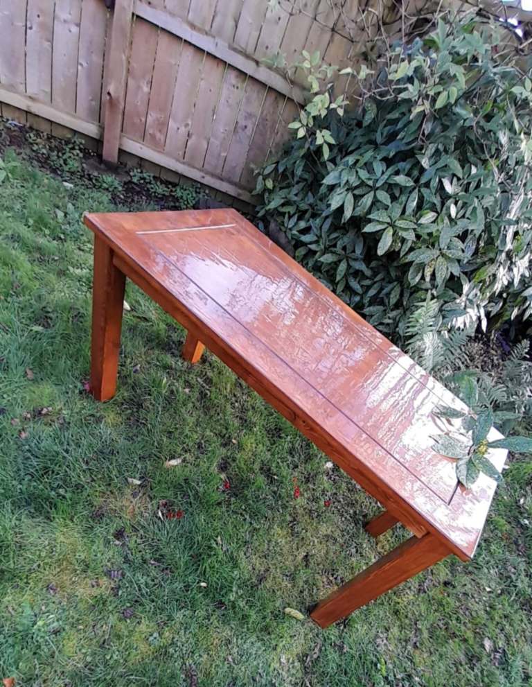 Recently refurbished with dark oak wood stain and yacht varnish.Legs can dismantled for easier transportation.