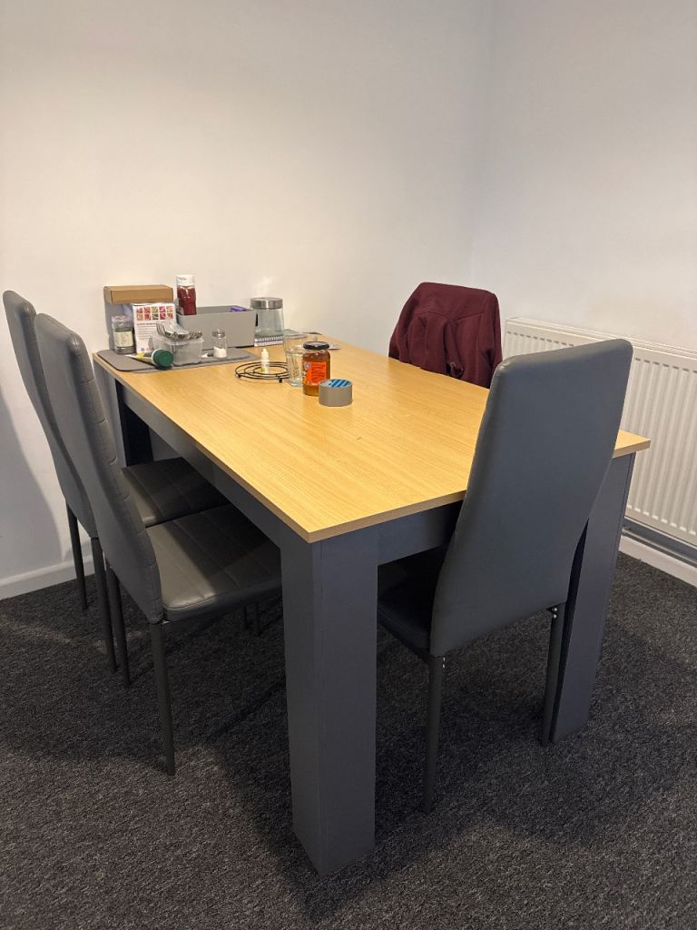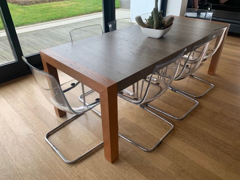 Large dining room table 121cm x 90cm with 8 acrylic chairs. All from IKEA.