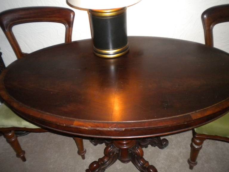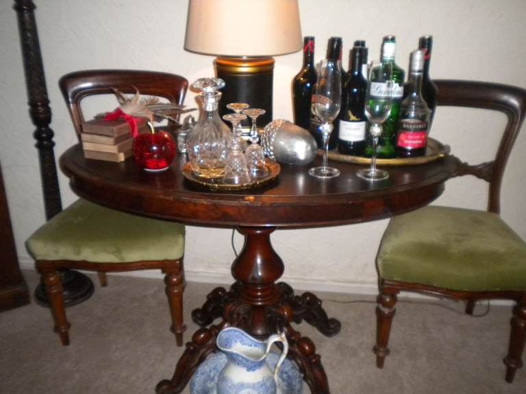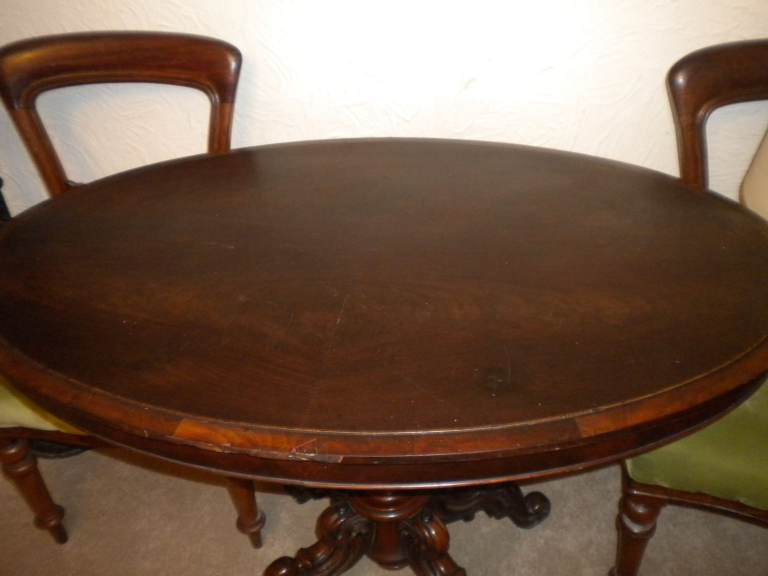 LOVELY ANTIQUE OVAL SMALL DINING TABLE & 2 CHAIRS