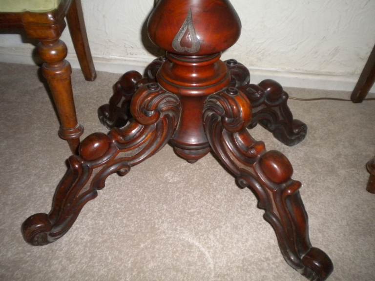 IT HAS A BEAUTIFUL CARVED TRIPOD SINGLE LEG.
