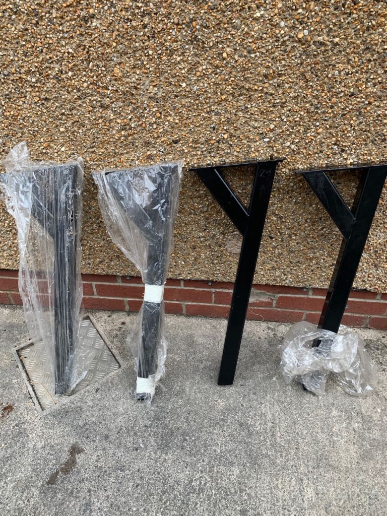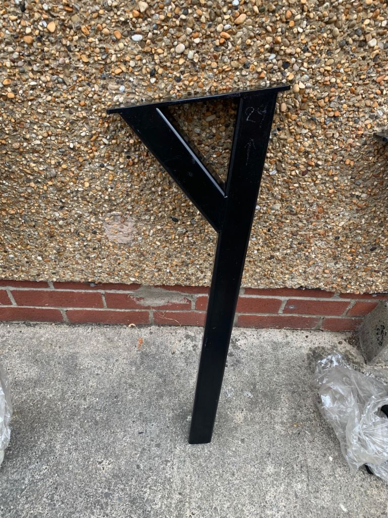 Handmade table legs , made from box section metal 50x 50 .Each leg measure 29” long Powder coated black with adjustable locating holes at the bottom of each leg, would look amazing with a nice wood top to your required size to suit your home.